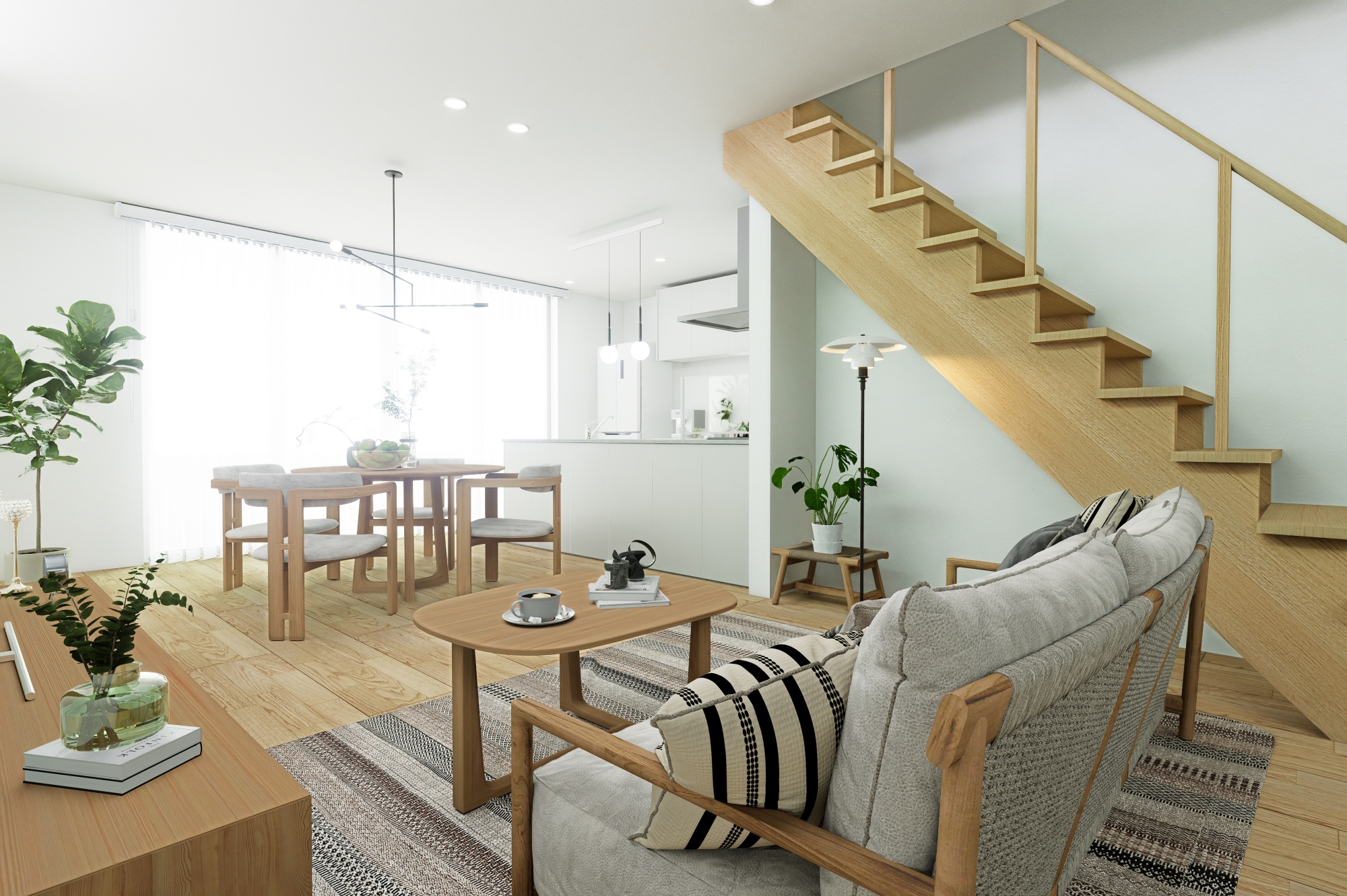 LDKとつながる階段が家族の気配を感じやすくし、日常の中に自然とコミュニケーションが生まれます。