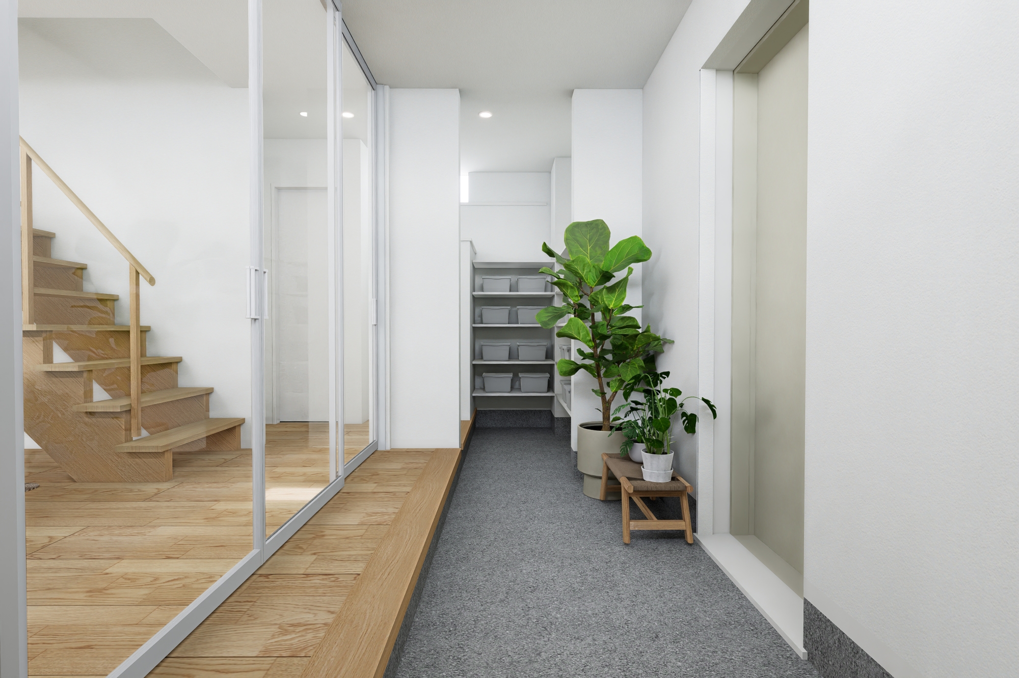 玄関からSC、洗面、キッチンへとつながる動線により、帰宅後の流れもスムーズです。
