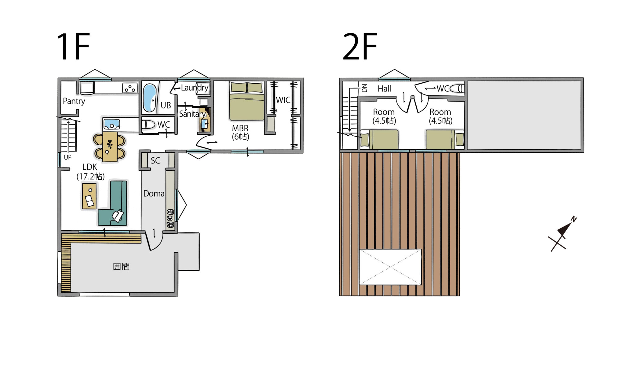 | 間取り | 2LDK+WIC+Pantry+SC+Doma+囲間 ※将来的に壁を設けることで3LDKに変更可能 | 構造 | 木造2階建 |