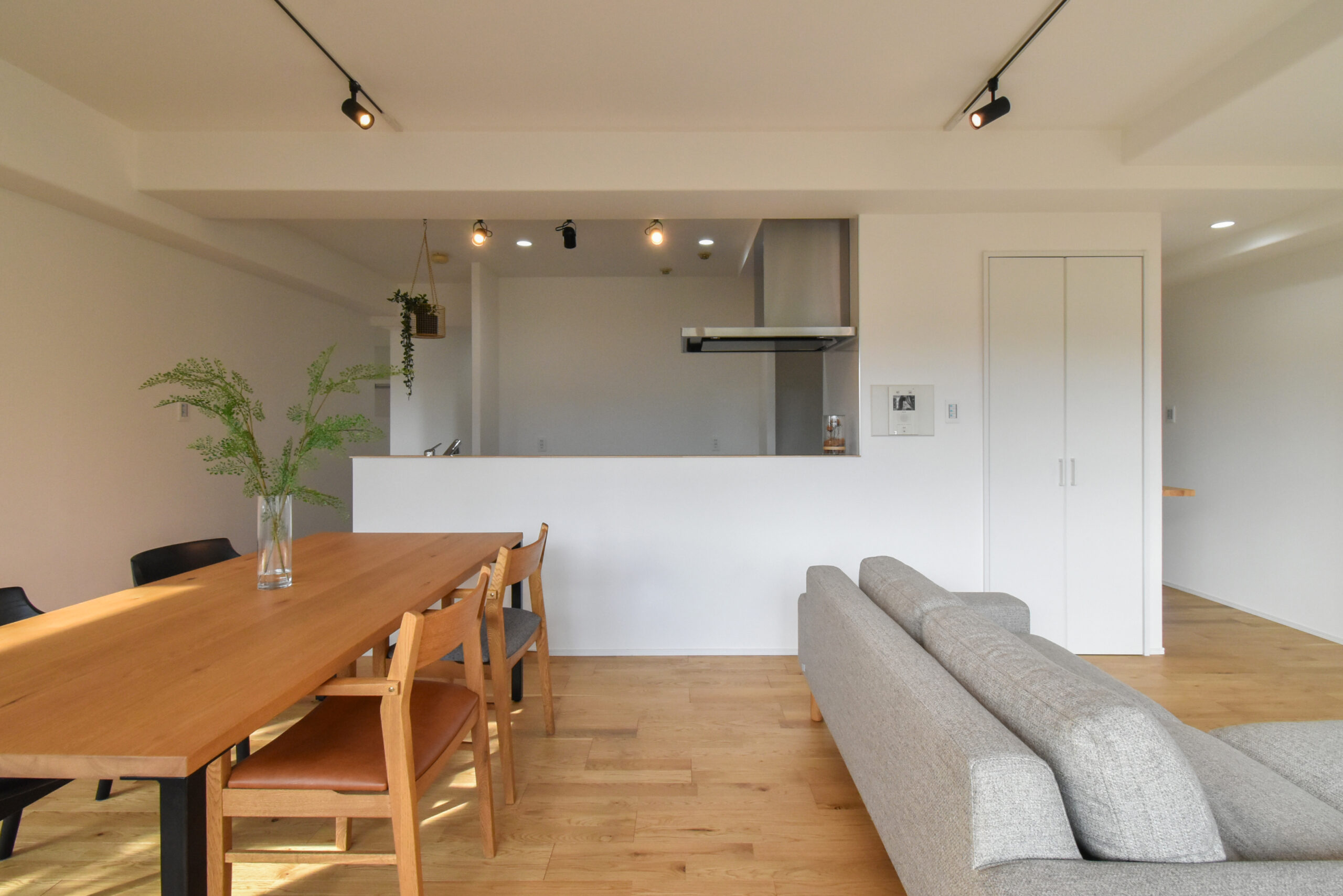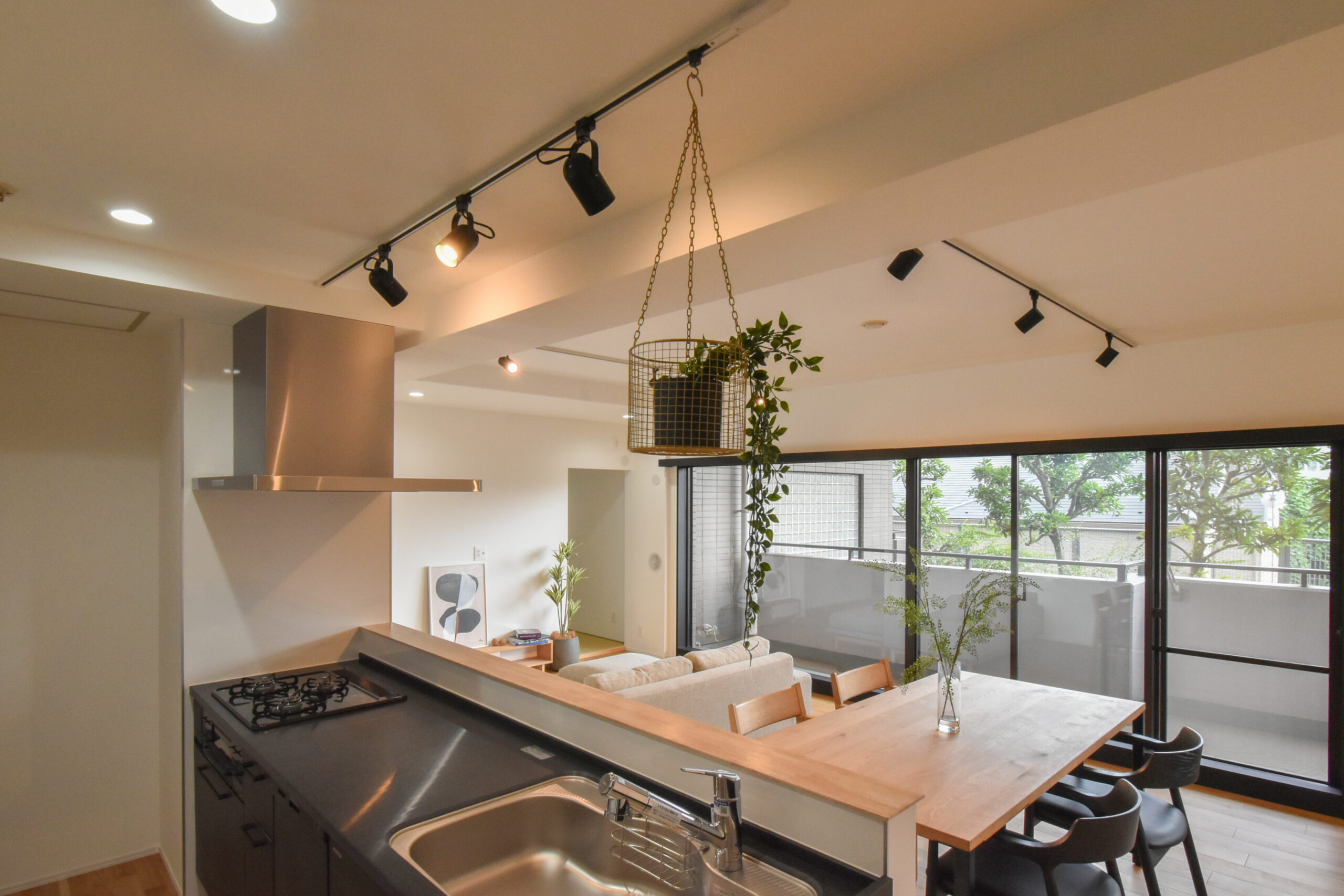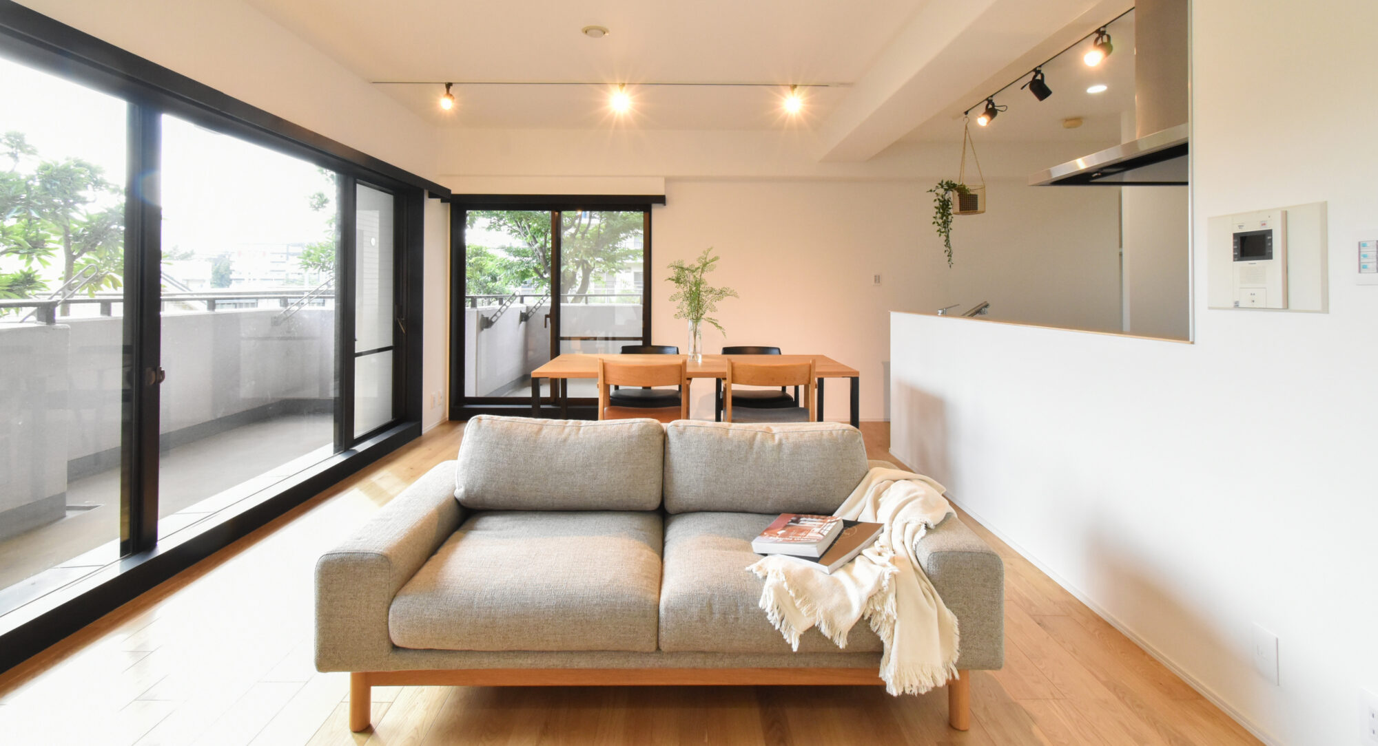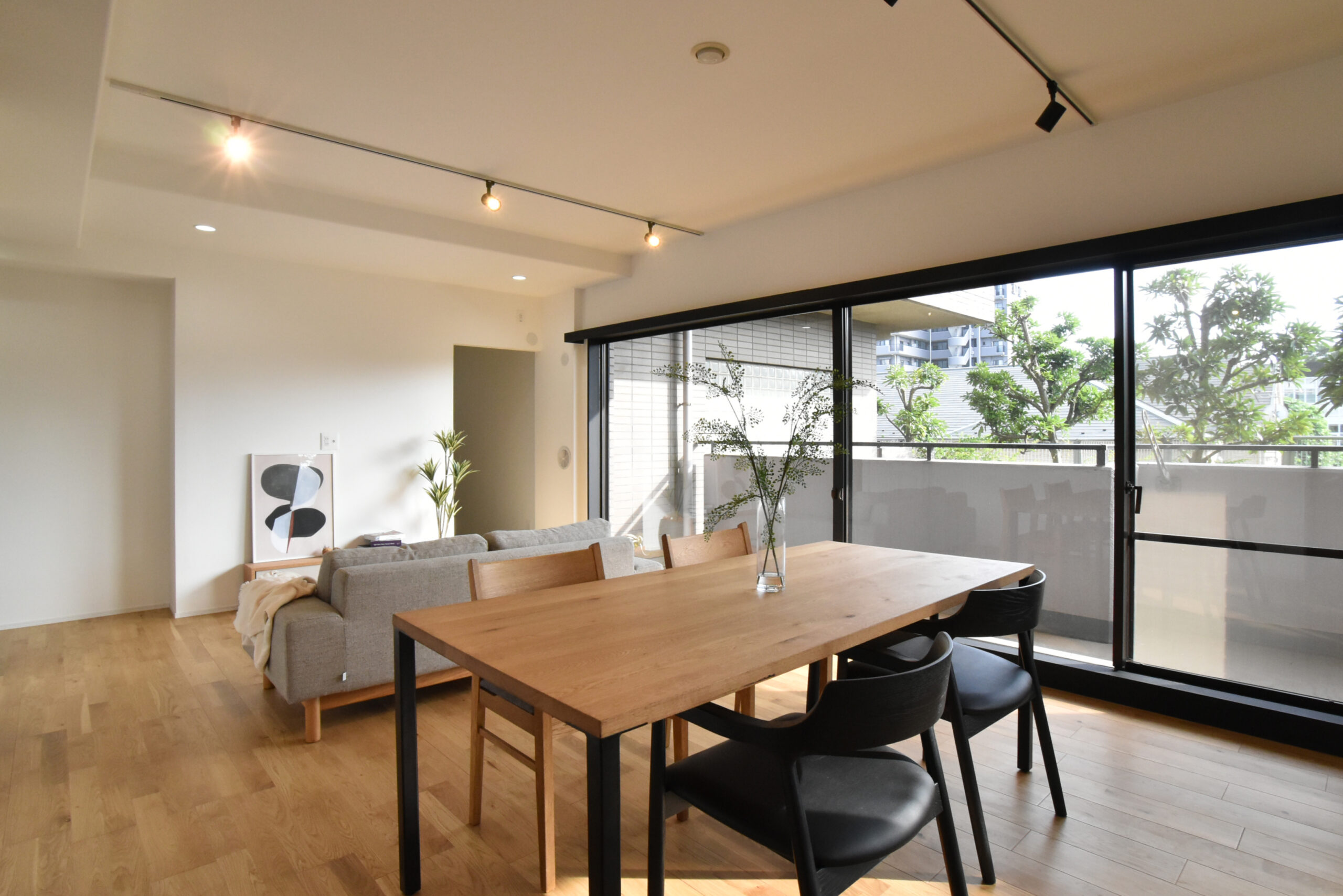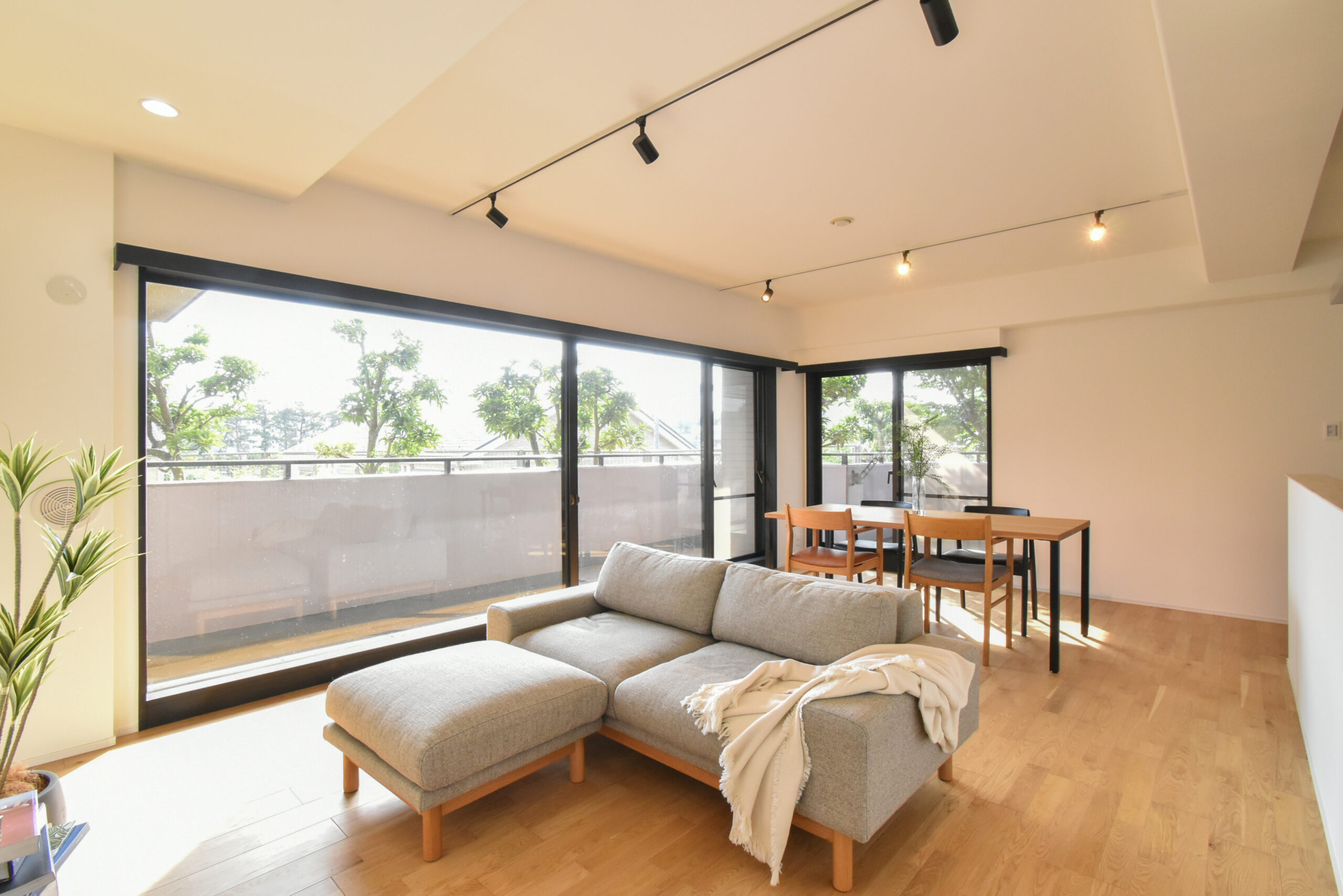 LDKは南西側一面が広いバルコニーと繋がっており、大開口の窓から光が差し込みます。