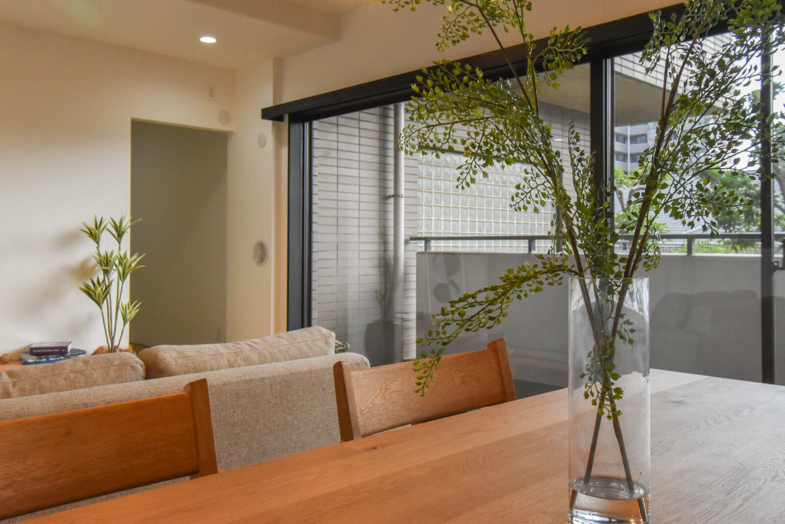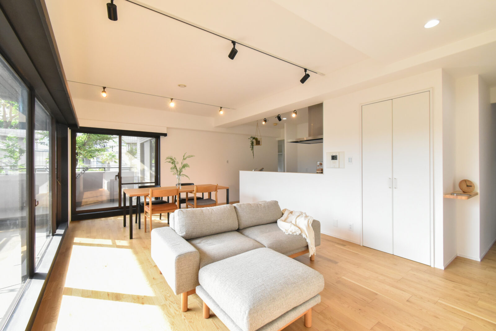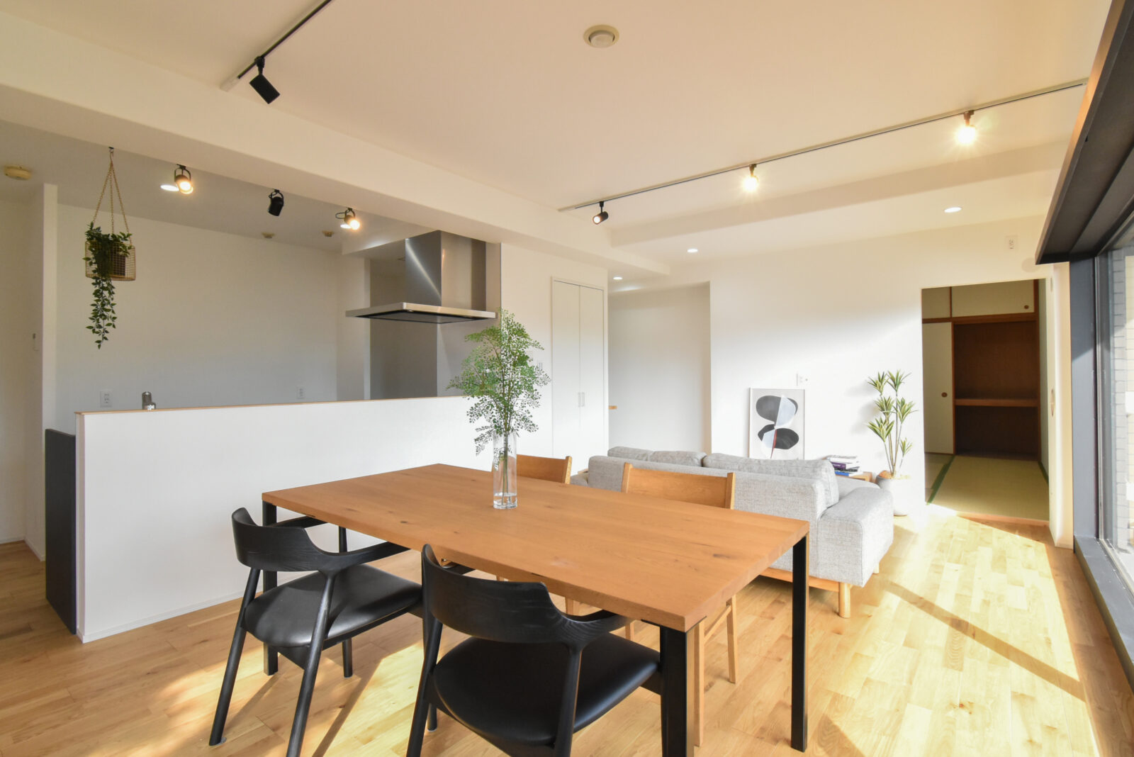 LDKは南西側一面が広いバルコニーと繋がっており、大開口の窓から光が差し込みます。