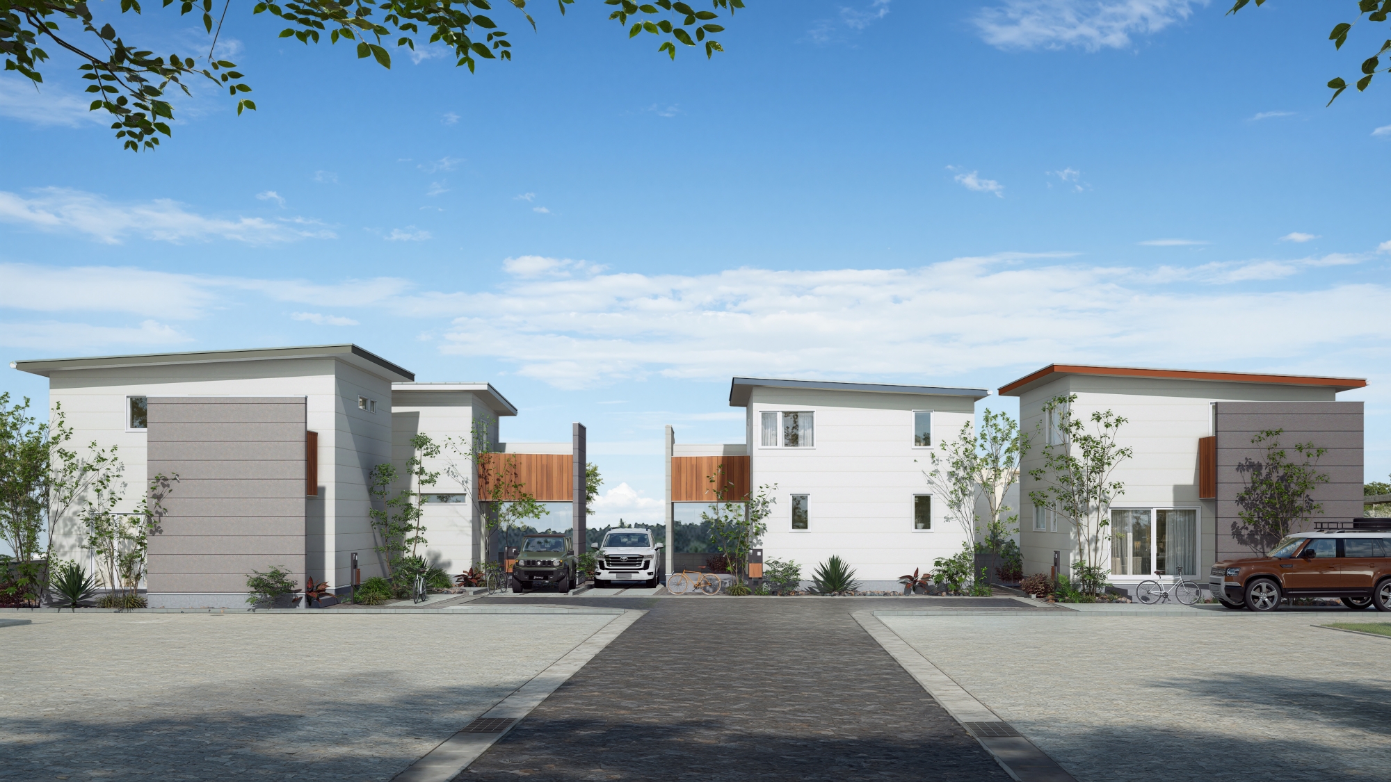 軒のラインを揃えた外観が、街全体に統一感のある整った景観をつくり出します。