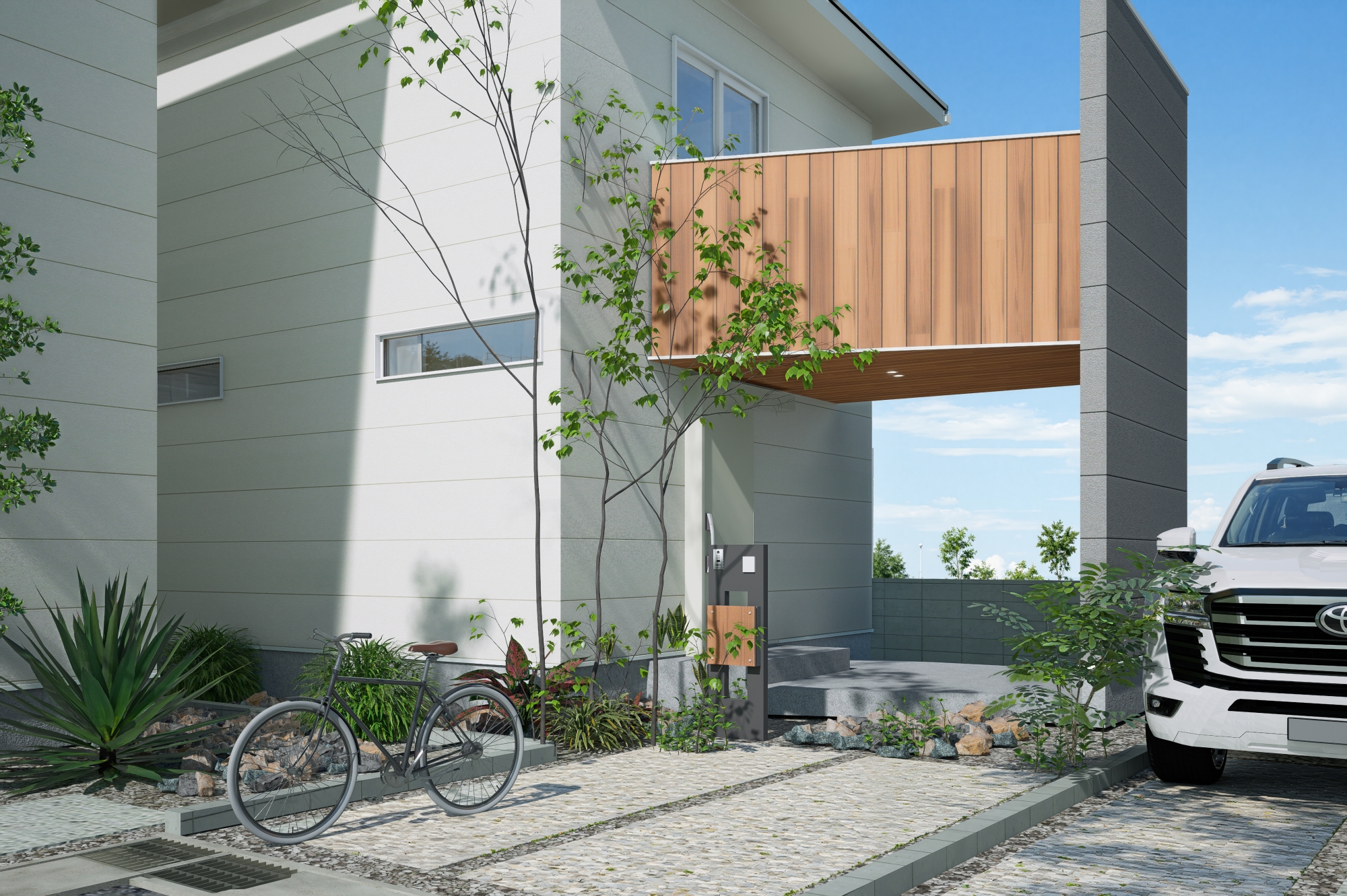 安全性と心地よさの両方を大切にした外構計画。