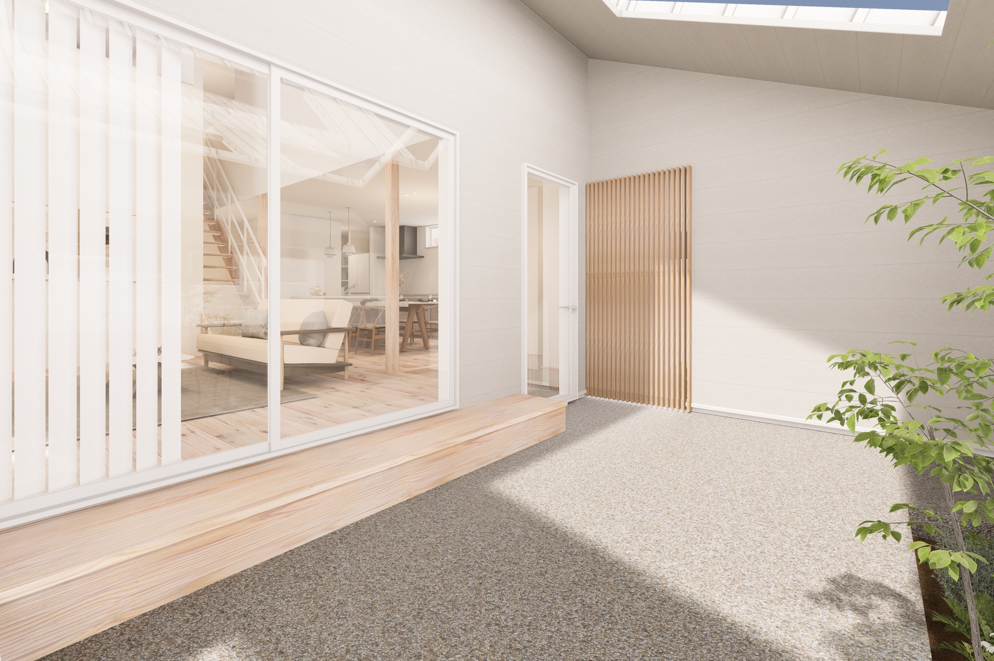 室内でもなく、完全な屋外でもない「ちょうどいい距離感」が、暮らしに豊かな余白を生み出します。