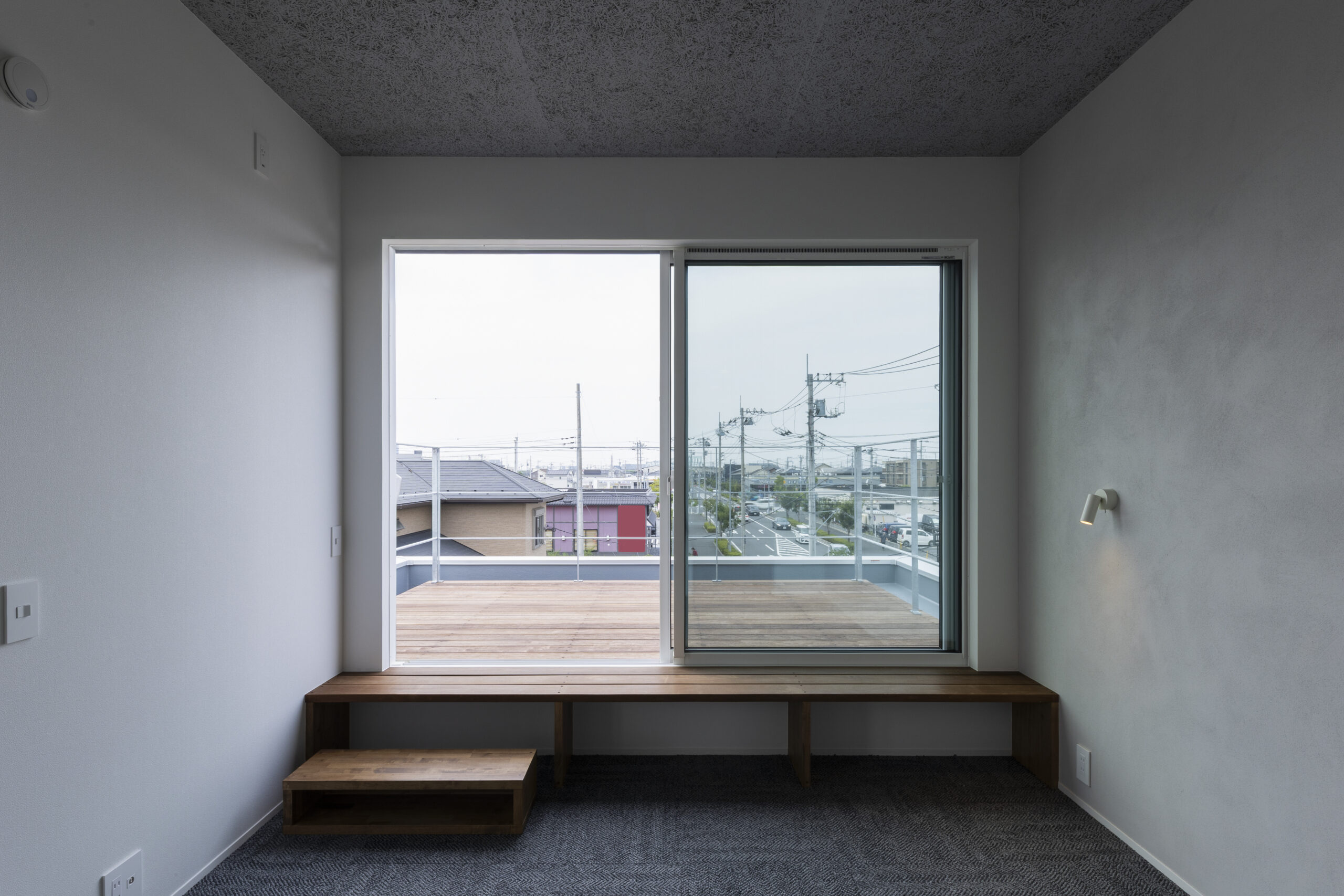 空へと開かれた、最上階のウッドデッキ。