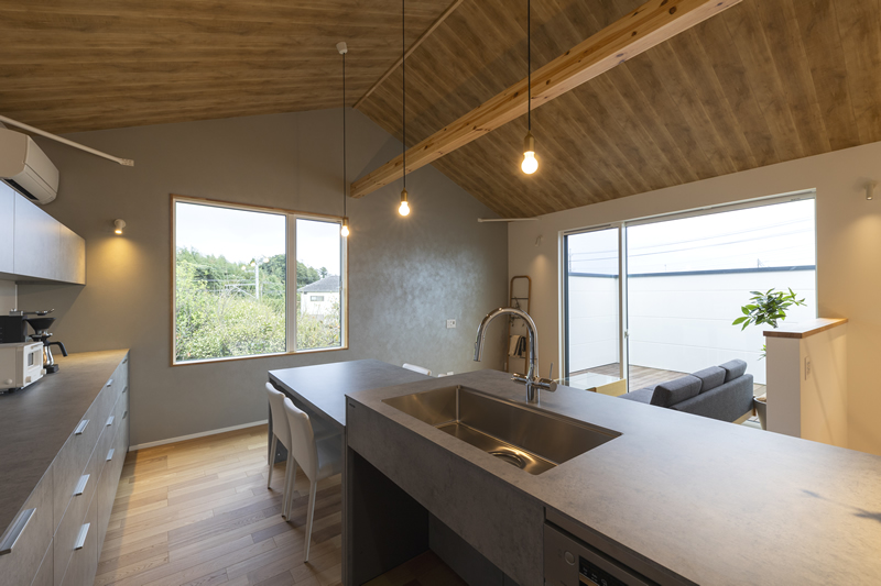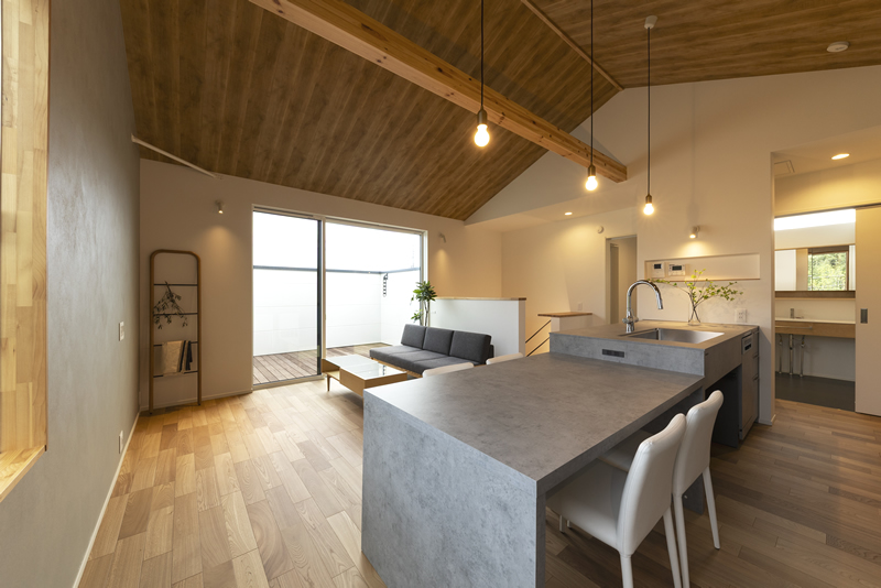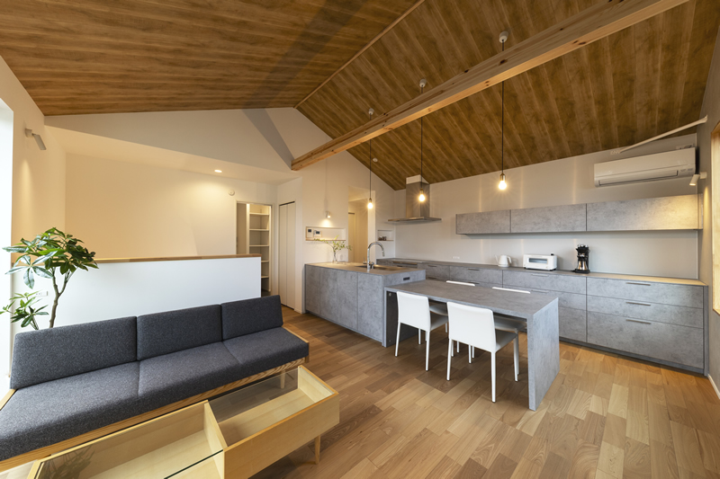 勾配天井と回遊動線が家族を自然につながる2階LDK。