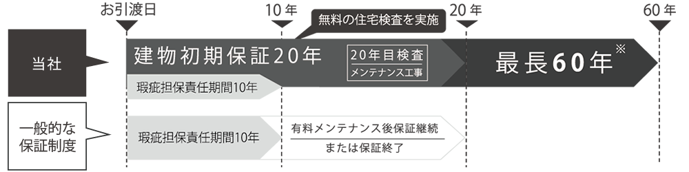 ※21年目以降は定期的な検査および指定のメンテナンス工事(有料)を行った場合が対象です。
