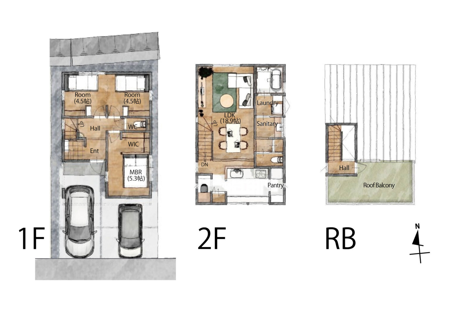 | 価格 | ご成約済 | 間取り | 3LDK(洋 5.3・4.5・4.5 / LDK 18.9)+WIC+Pantry+RB |