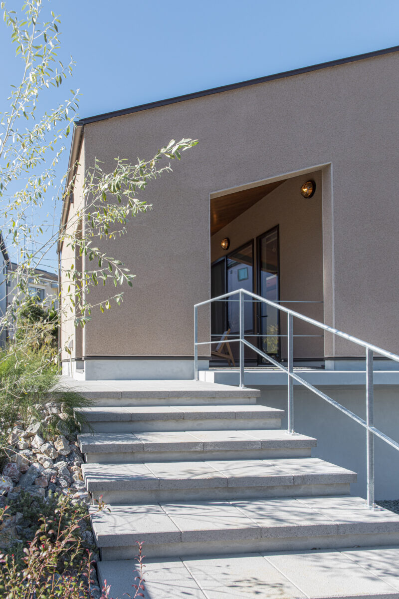 閑静な住宅地に佇む、自然素材の美しさと独特の風合いを楽しめる、そとん壁で仕上げた平屋。