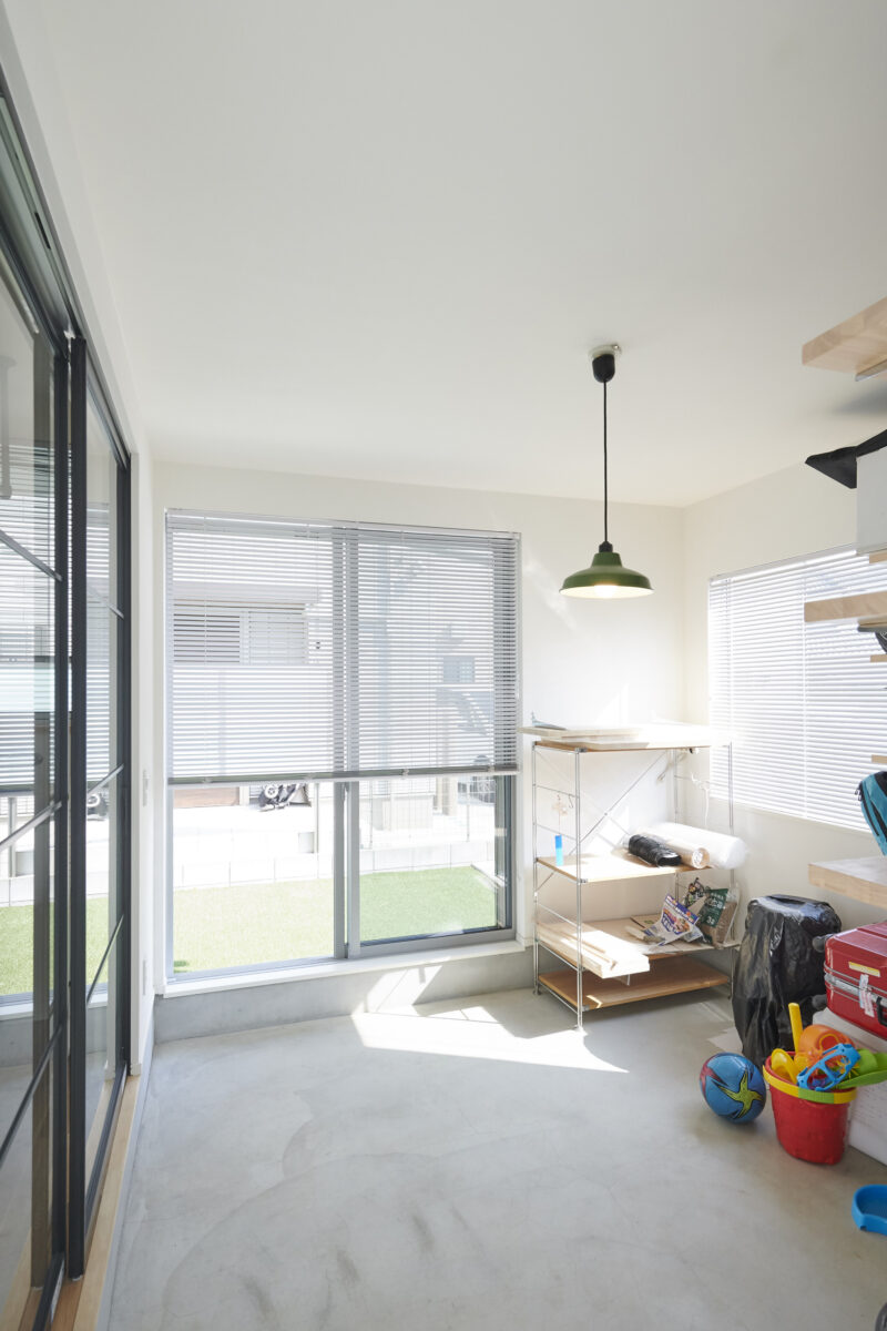 プライバシーに配慮し、幹線道路に対しては閉じた家となっています。