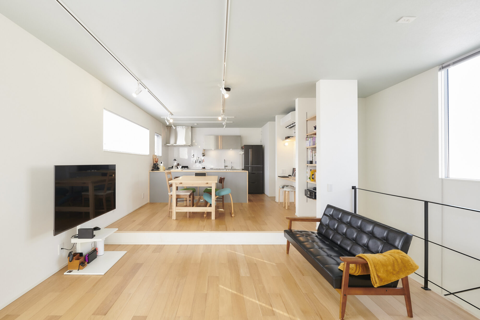 開放感を保ちながらも緩やかに空間を区切り、圧迫感を解消しました。