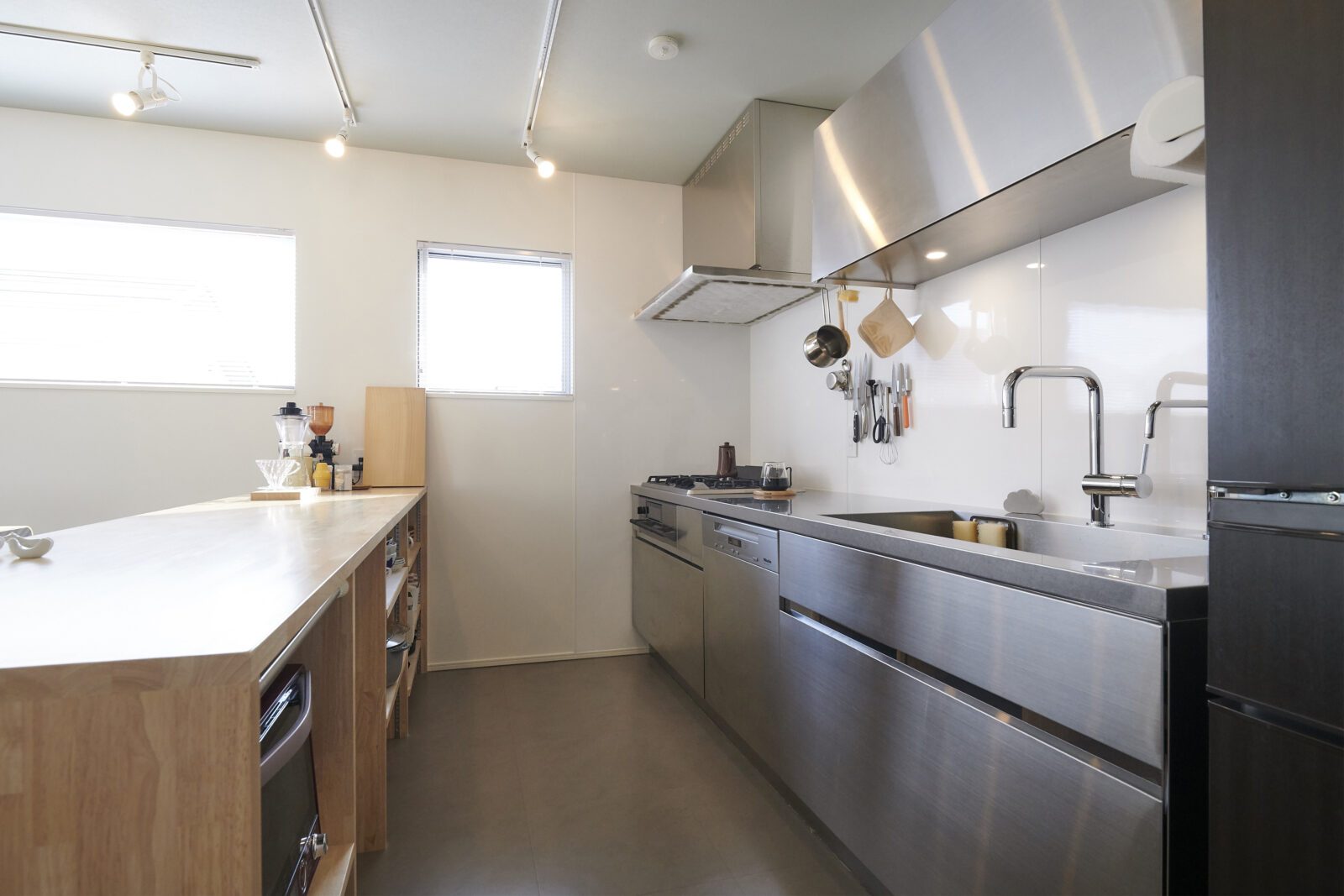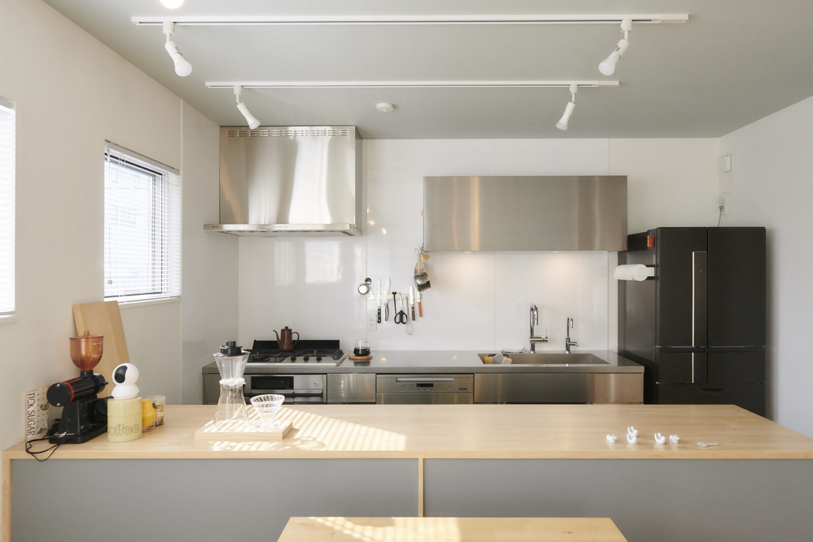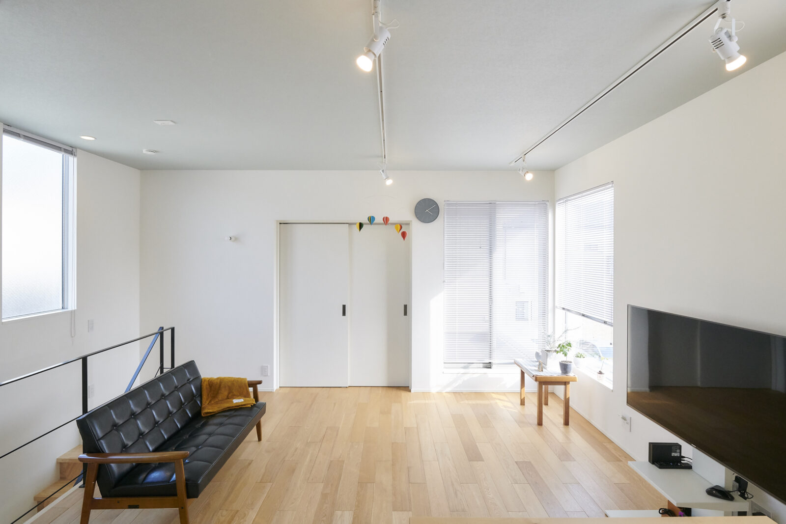 ホワイト・グレーを基調にしたシンプルな空間に、木目が映えるナチュラルな家になりました。