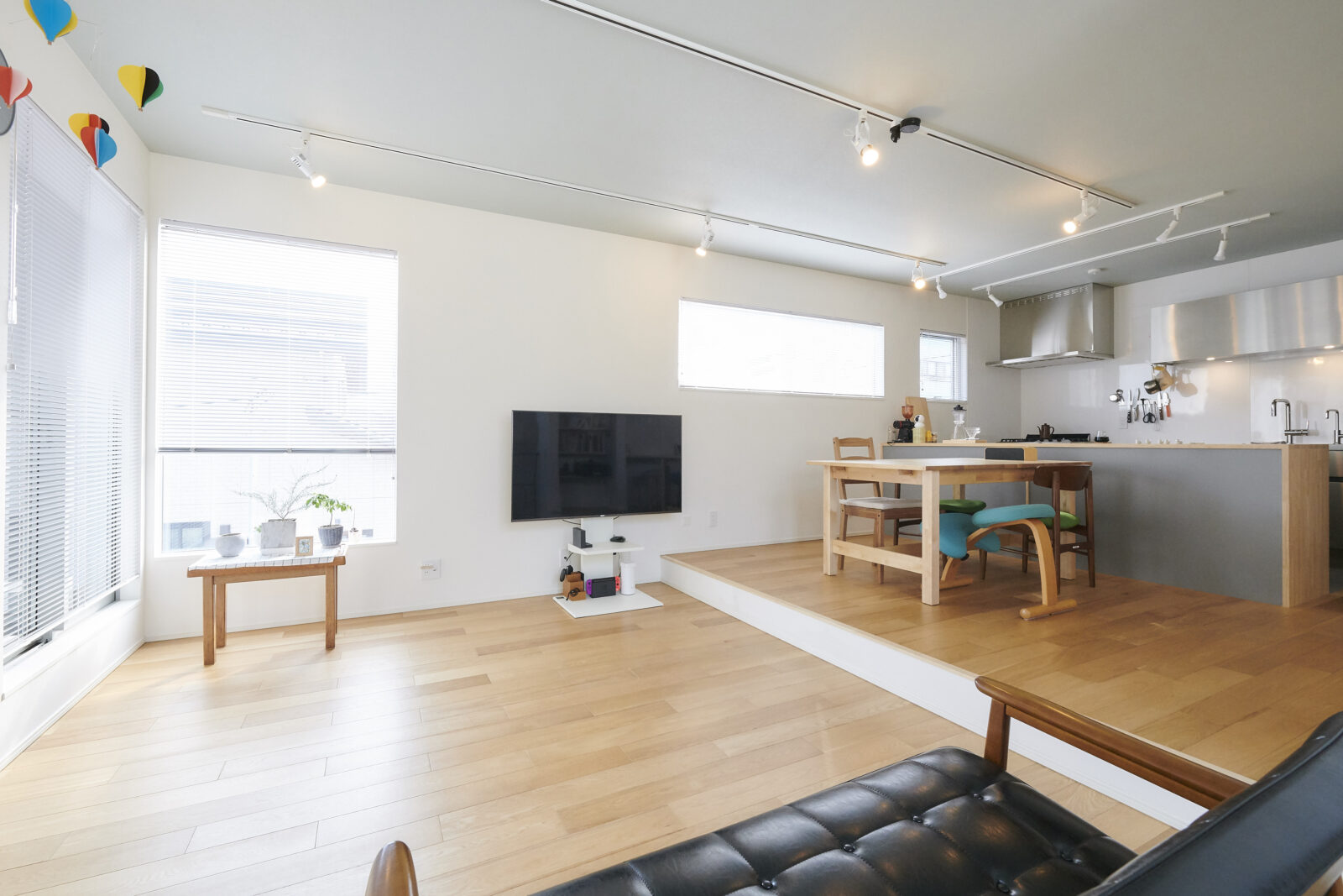 リビングとダイニングをスキップフロアにすることによって