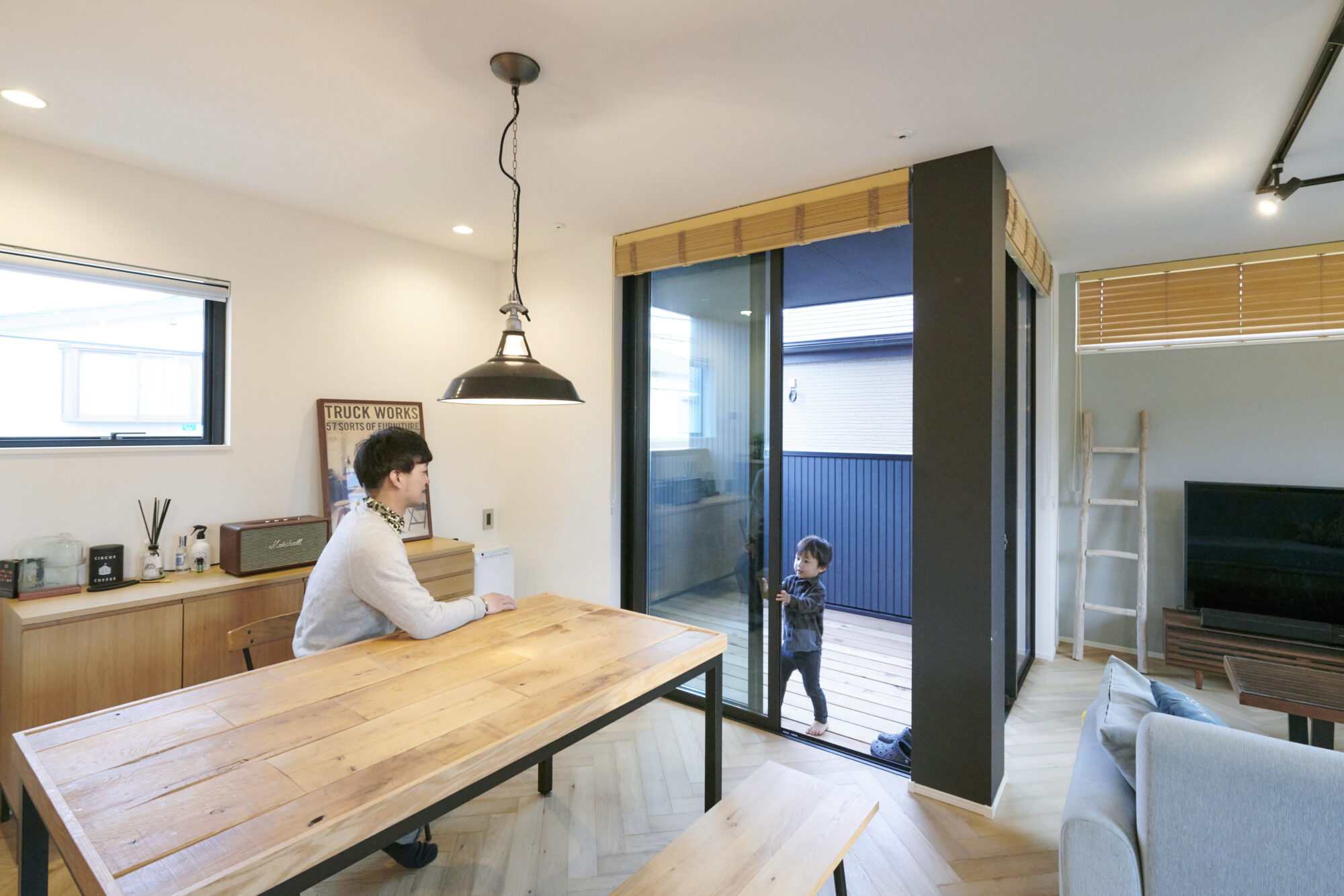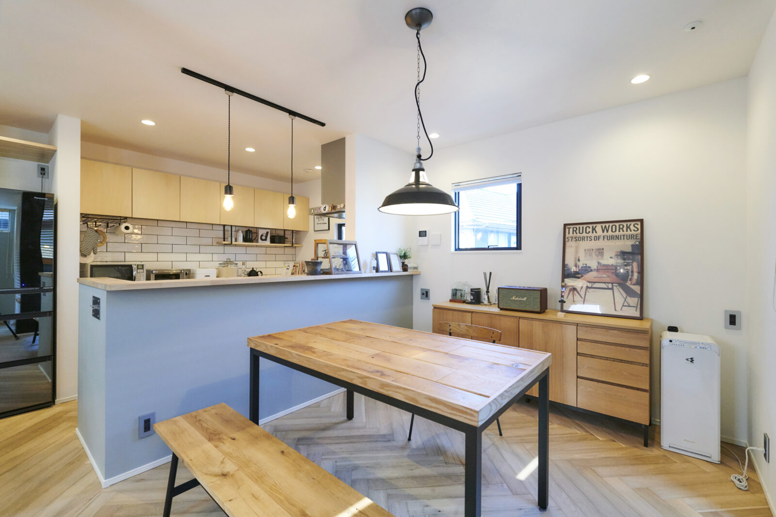 床材にはラスティックオーク×ヘリンボーンを使用。