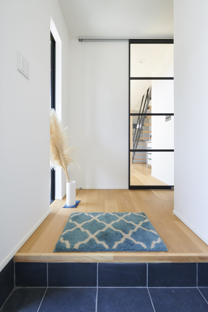 Cherish 建築エリア 千葉県 建築年 2018 敷地面積 236.64m² 延床面積 108.06m² 緑に囲まれた閑静な環境に佇む黒い矩形の住宅。 ブリックタイルが施された玄関をくぐると、 外観とは対照的なオークの優しい色合いが広がるLDK。 吹き抜けと重ねてリビングに設けた大開口からは、 外の借景へと視線が抜け、柔らかな光と開放感が心地よい空間に仕上げています。 オークの温もりのある床材に、ブラックスチールの階段やこだわりのタイル等、 吟味して決めていったマテリアルが随所にちりばめられ、お施主様の「色」がカタチとなりました。 シンプルだけど素材にこだわった、そんな家族の空間を大切にしていける住まいとなりました。