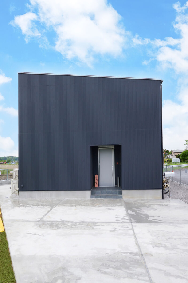 道路側から開口を一切設けず、一見すると用途が分からないファサード。