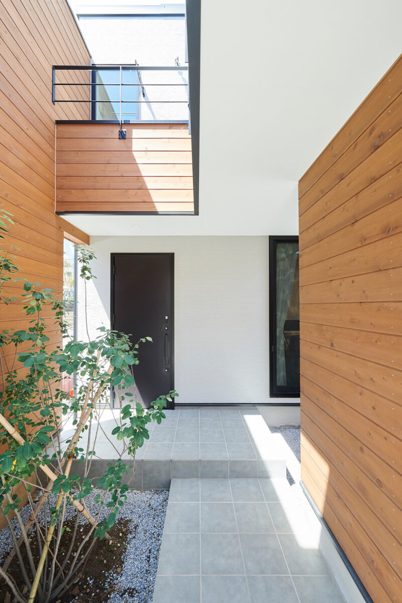 緑と木塀に囲まれた庭=バッファーゾーンが住宅と街の程良い距離感を演出しています。
