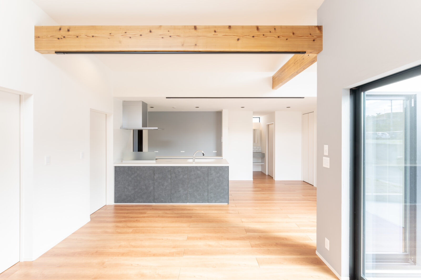各居室はLDKと隣り合わせの配置としたことで、内部空間が一体的で住みやすい空間を計画しました。一方で、戸を閉めることでプライベート空間としての各居室の機能も果たします。