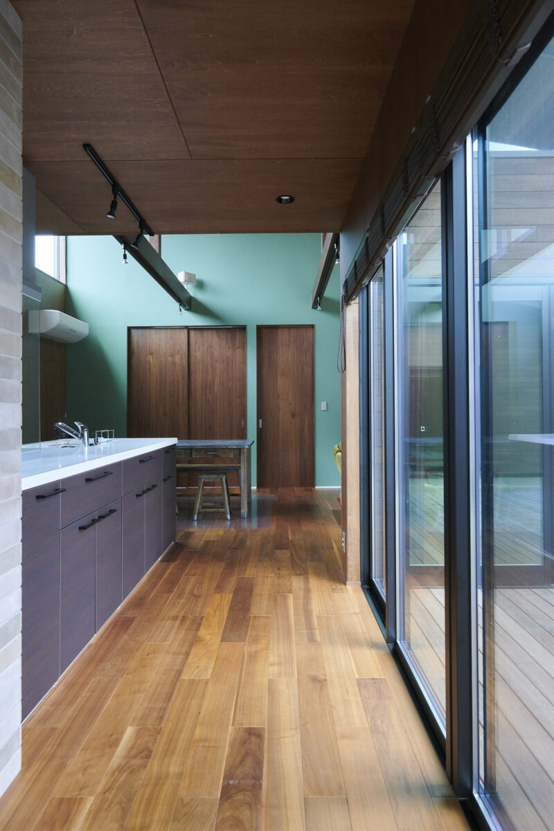 木ノ平屋 建築エリア 千葉県 建築年 2016 敷地面積 607.46m² 延床面積 121.31m² 海からほど近い、広大な敷地に佇む平屋の住宅。 大きな庭に向かって建物をコの字型に計画。 ウッドデッキ・リビング・居室・水廻りがゆるやかに繋がり、 どの場所にいても家族の気配を感じることができます。 室内は大胆に木とグリーンを基調とし、ノスタルジーと新しさが共存する空間に。 様々な表情を生み出す木の質感が、家族の生活をおおらかに包み込む家となりました。