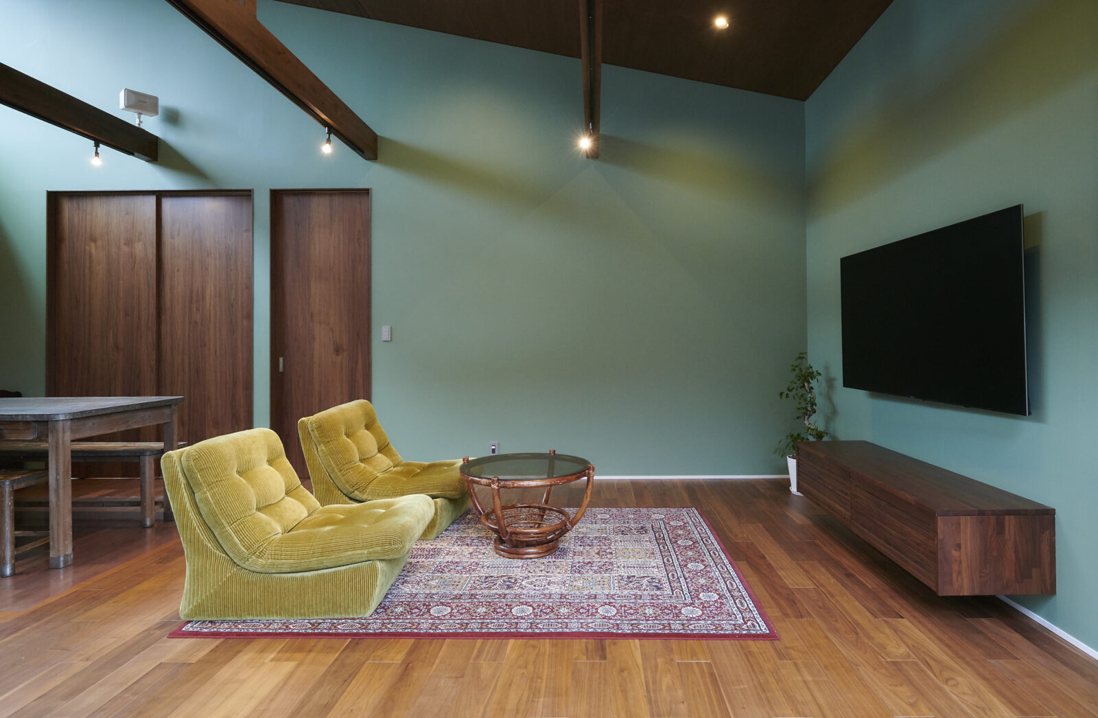 室内は大胆に木とグリーンを基調とし、ノスタルジーと新しさが共存する空間に。