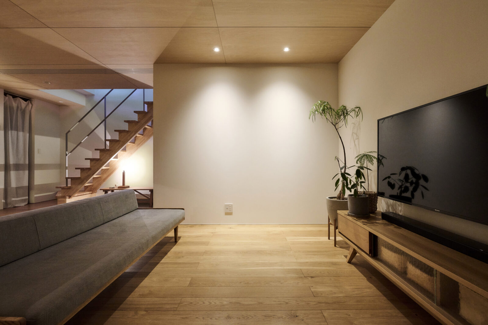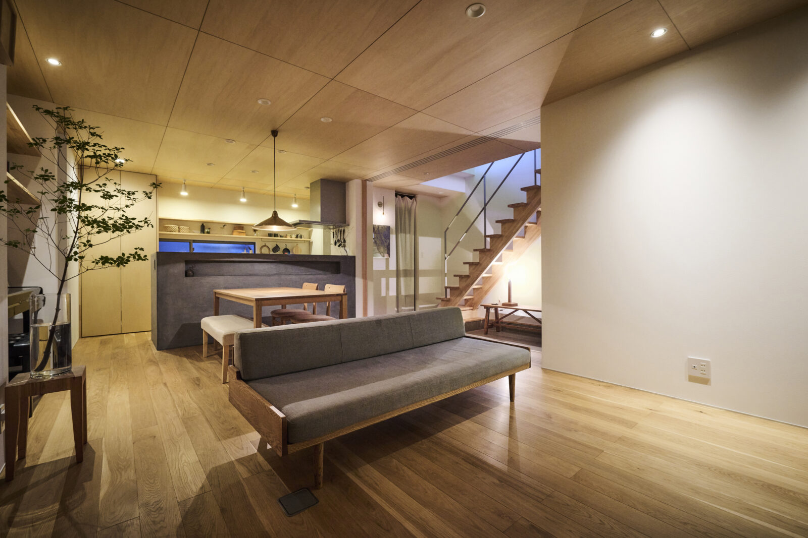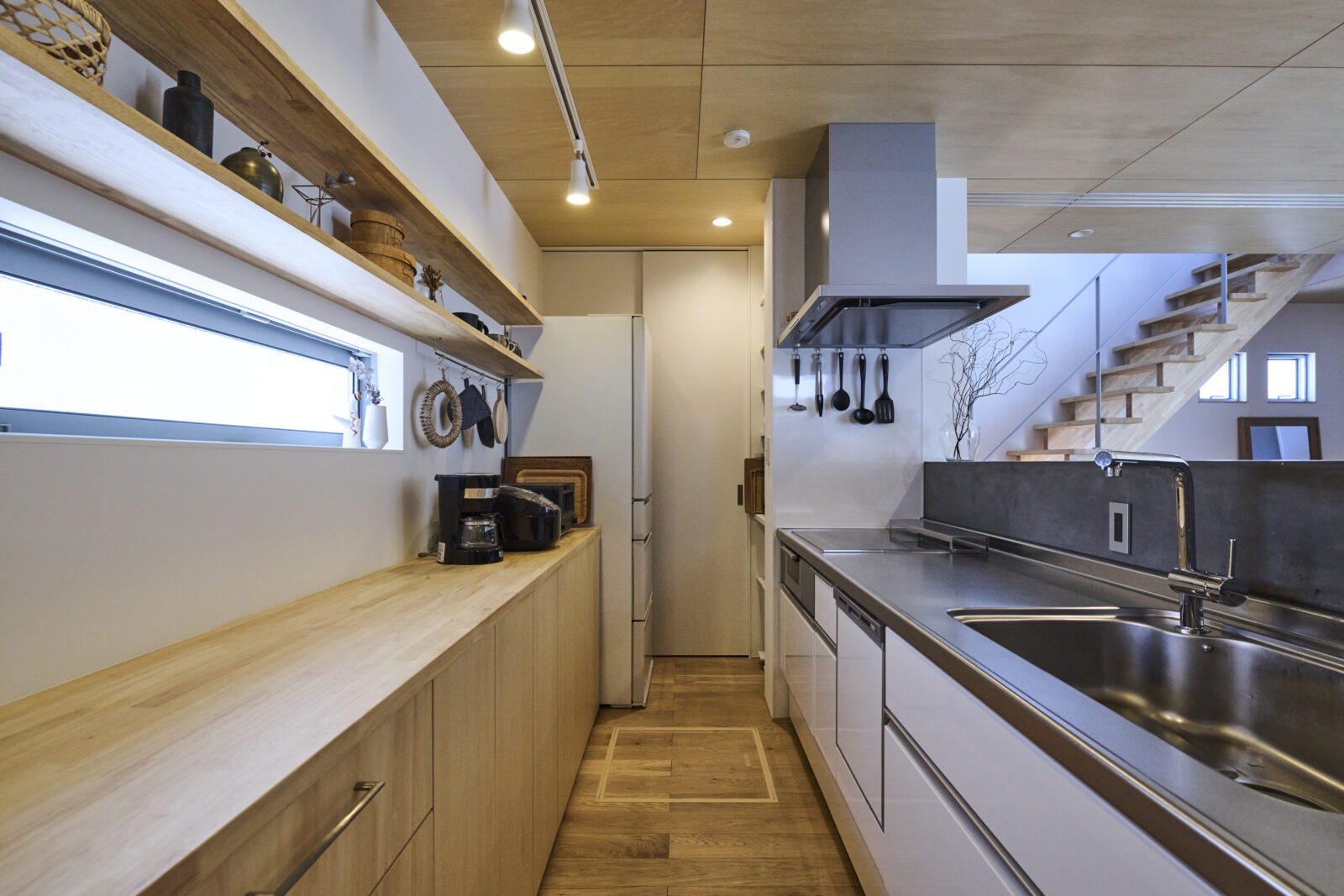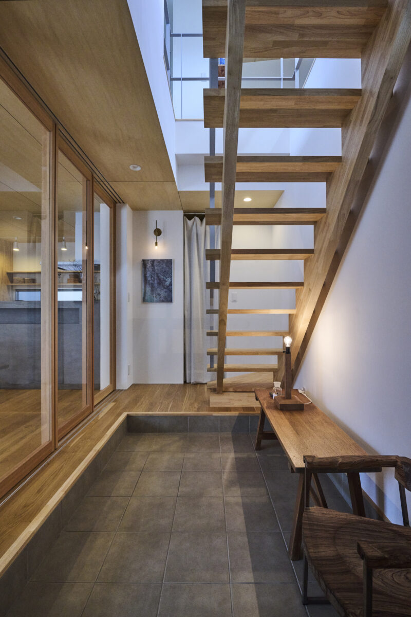 空間と統一感を感じられながらも、すっきりとした見た目で軽やかに2階へ導いてくれます。