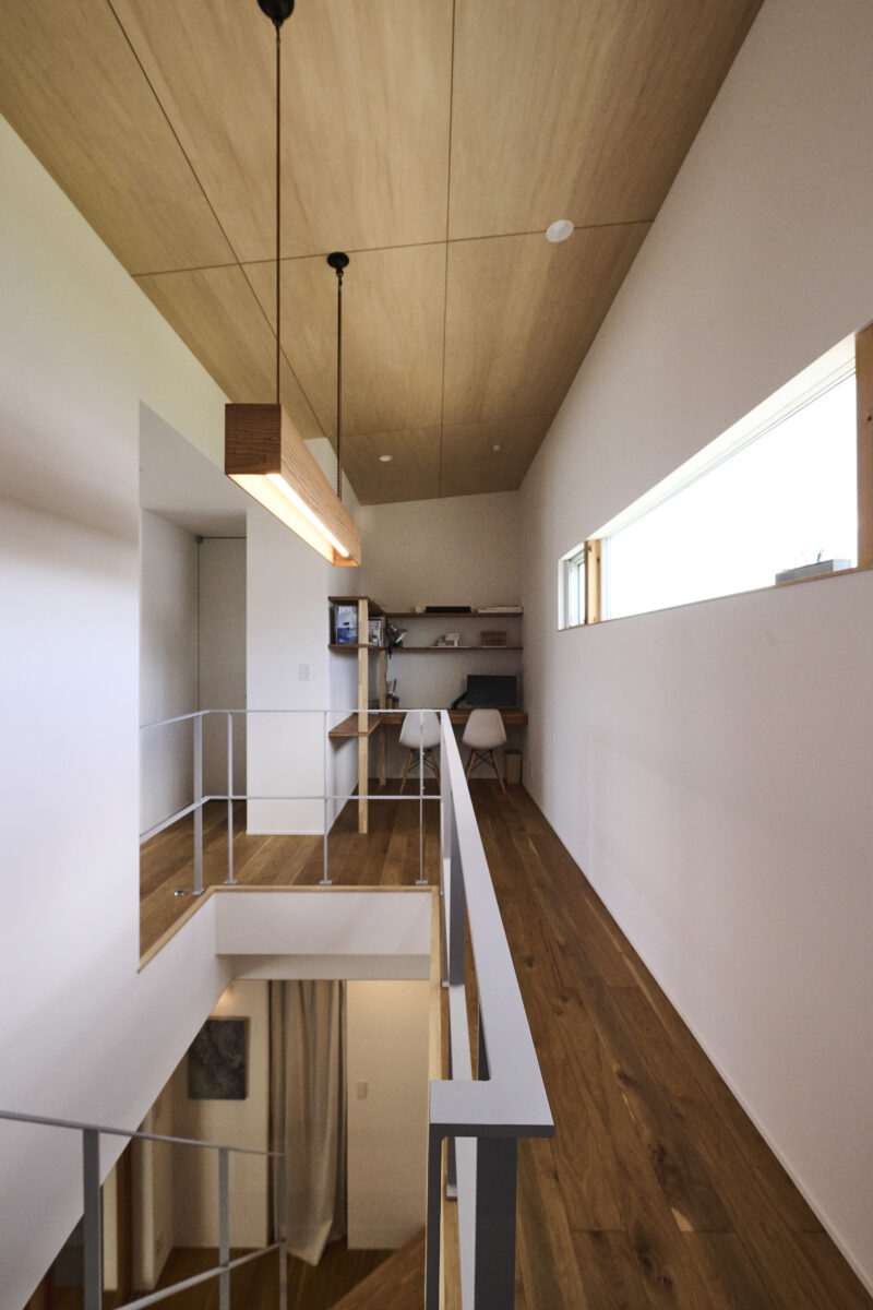 南側に大きなマドを取り入れ採光を確保し、道路に対して閉じたプライバシーに配慮したお住まいです。