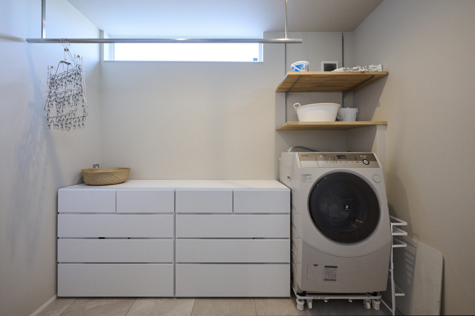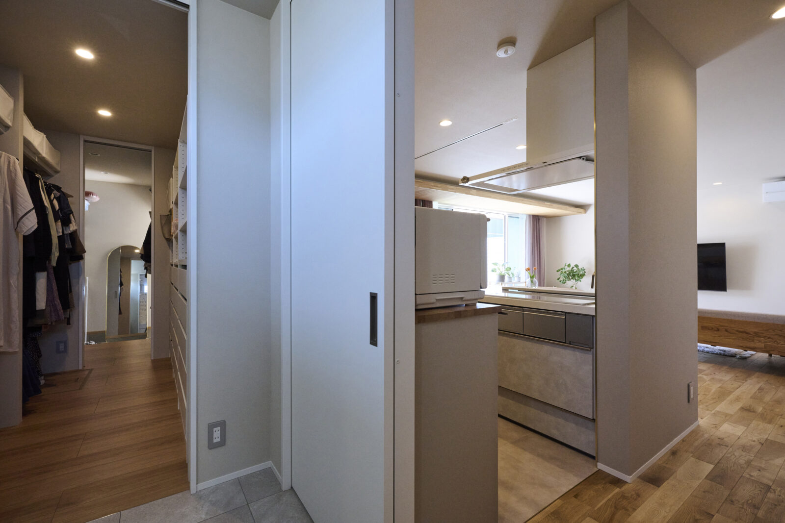 玄関→SC→FC、そしてサニタリー、最後にランドリーへとつながる回遊動線とし、住まいの使いやすさを追求。