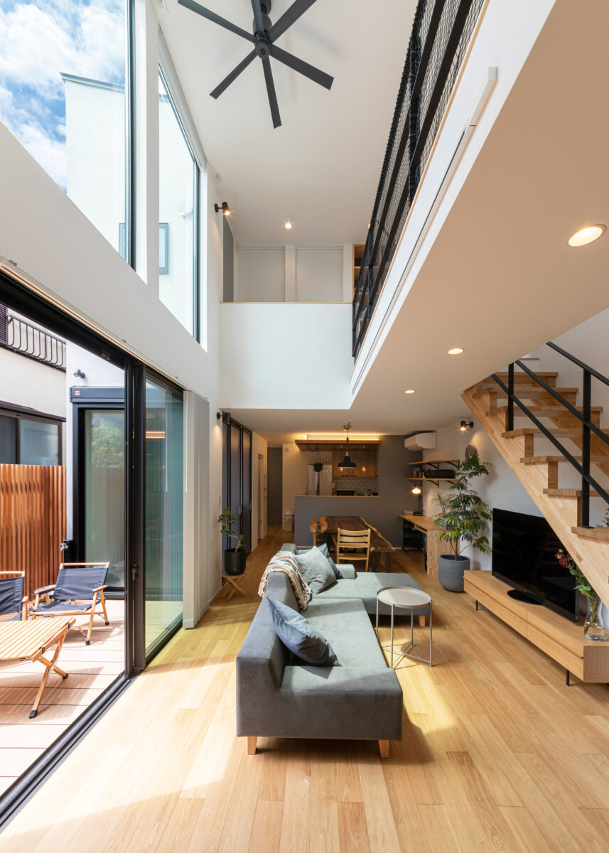 LDKの吹き抜けは南からの光が入り、気持ちのいい空間になっています。