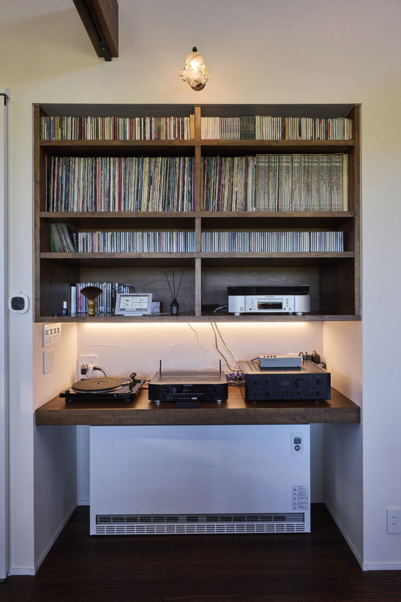 レコードやCDを収納できるスペースは、住まい手に配慮しジャケットサイズにピッタリ合うよう設計しました。