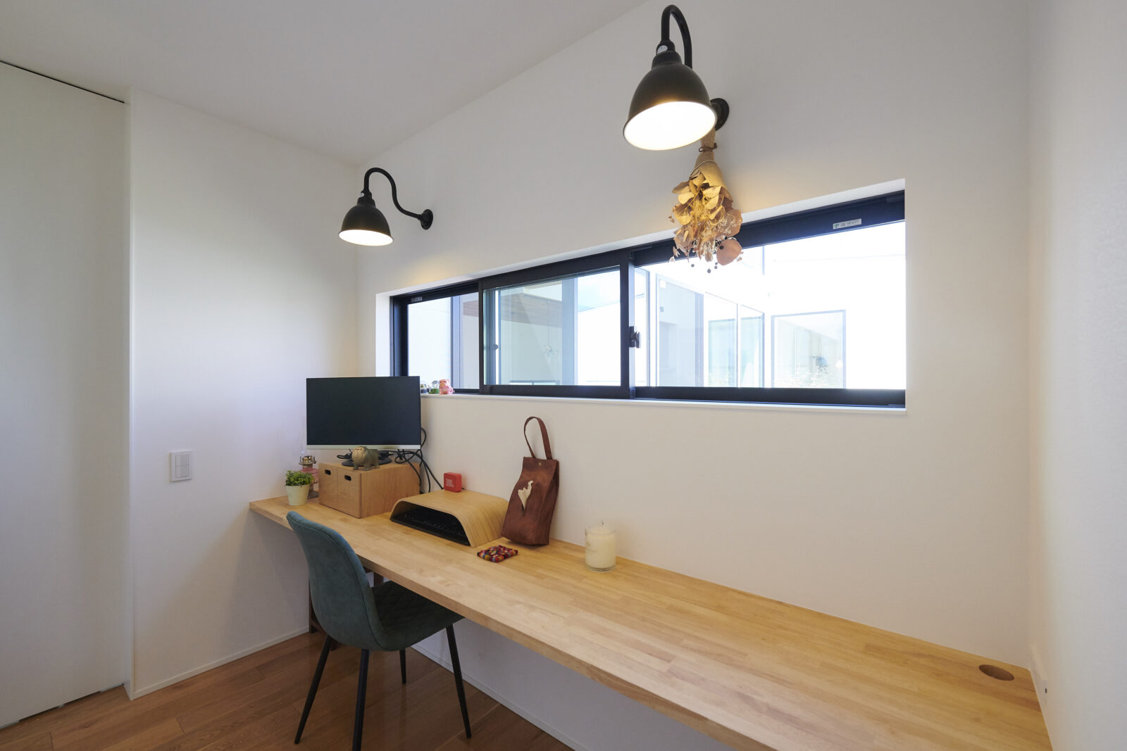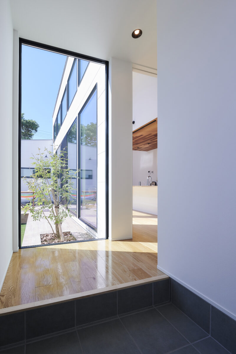 玄関を入るとガラス張りになっており、目の前に中庭が広がります。