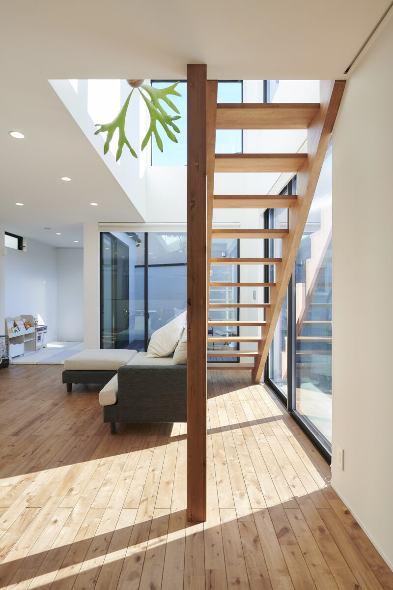 内観は無垢床と漆喰クロスの自然素材で揃えることで、暖かいご家族ならではの雰囲気を生み出しています