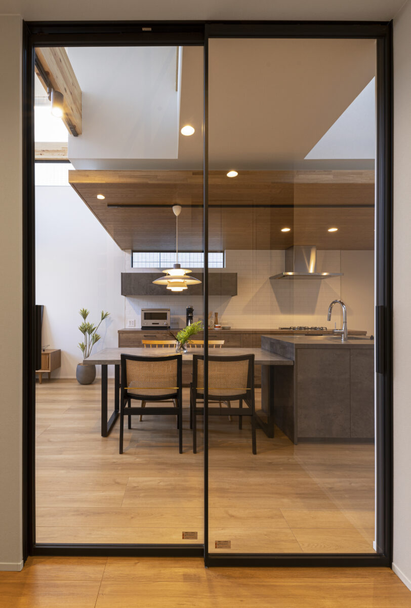 この吹き抜けにより、空間は垂直方向にも広がり、光と風の流れが心地よく感じられるよう設計しました。