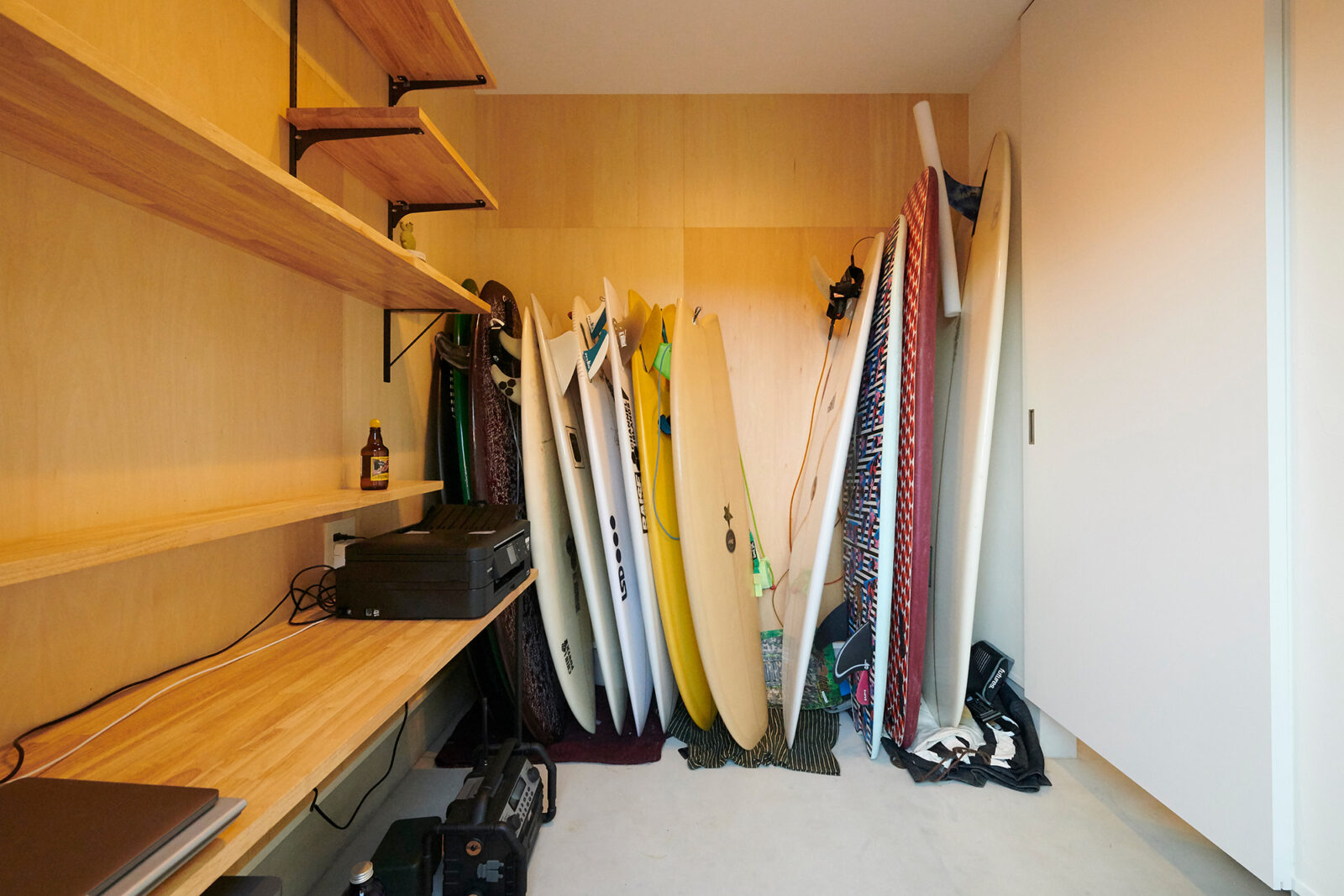 ガレージを通り抜けると、子どもたちの遊び場がある、