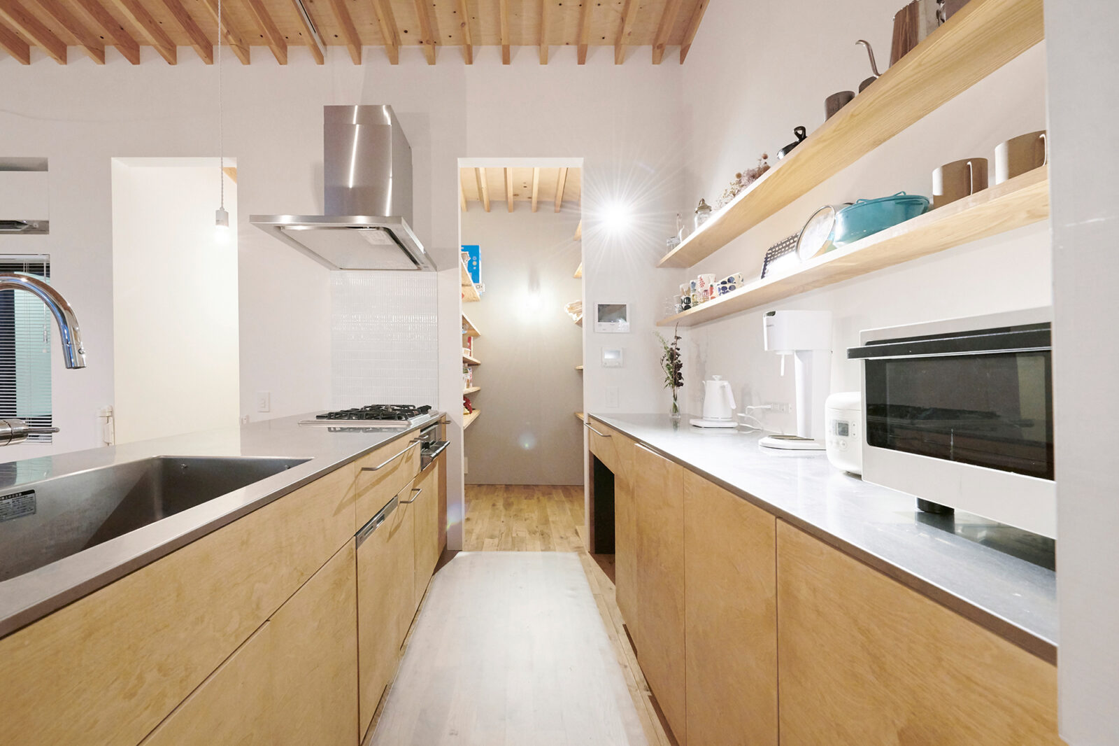 2Fは連続する垂木を魅せ構造を可能な限りそのままの形で現すことで、素材感と開放性もたらしました。