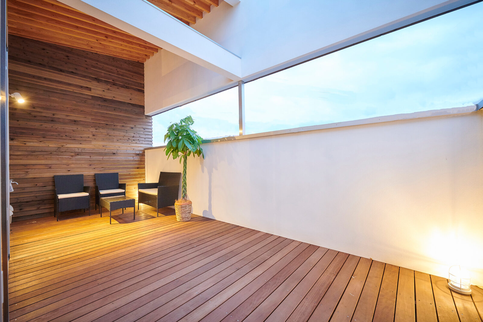 外壁には屋久島産の杉材を基調に、質感の異なる「白」の素材を組み合わせ立体感のある外観に。