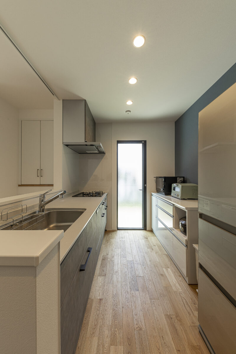 さらに、キッチンを中心に、リビング・水回り・庭へとスムーズにつながる動線を確保し、日々の暮らしにゆとりを与えます。