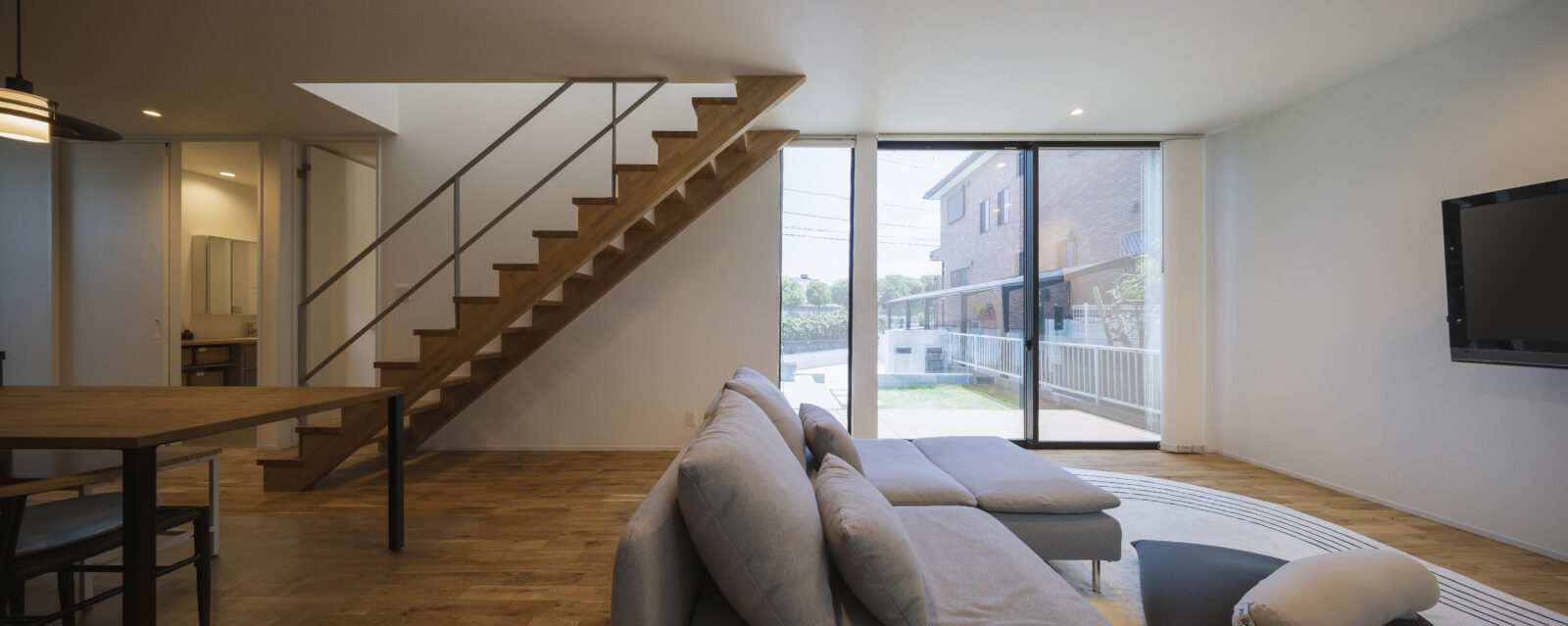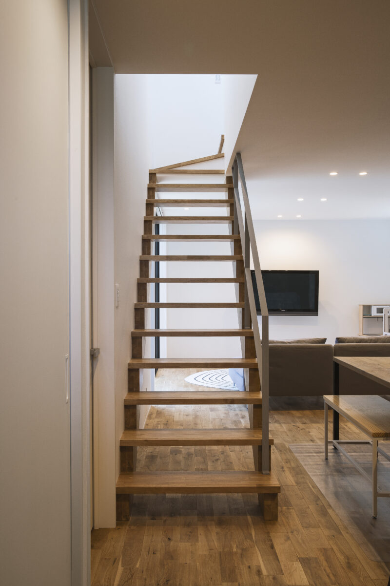 ストリップ階段を採用することで、光と視線を遮ることなく、空間全体にのびやかさを持たせました。