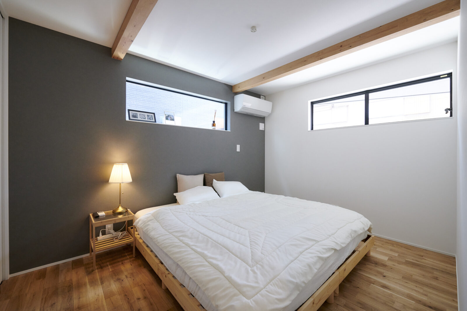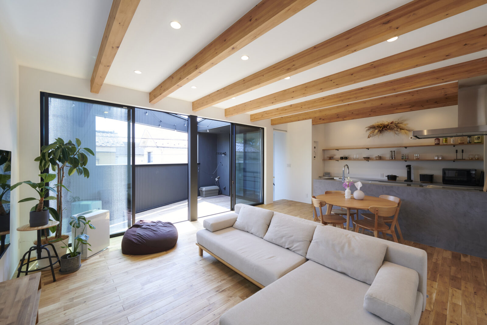 1階に居室、LDKと生活動線を2階に配置することで、住宅密集地の中でもLDKに採光と開放感をもたらしています。