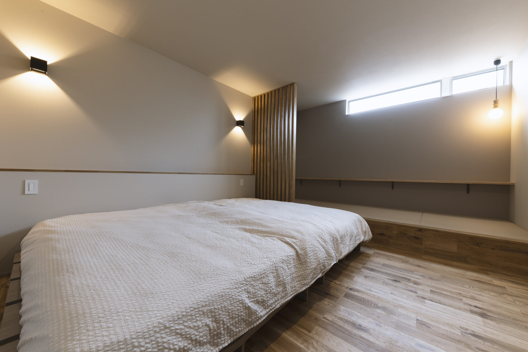 外壁にはジョリパッドをベースに、ガルバリウム鋼板を横張で重ねることで、柔らかさとシャープさの対比が、外観に静かなリズムが生まれました。