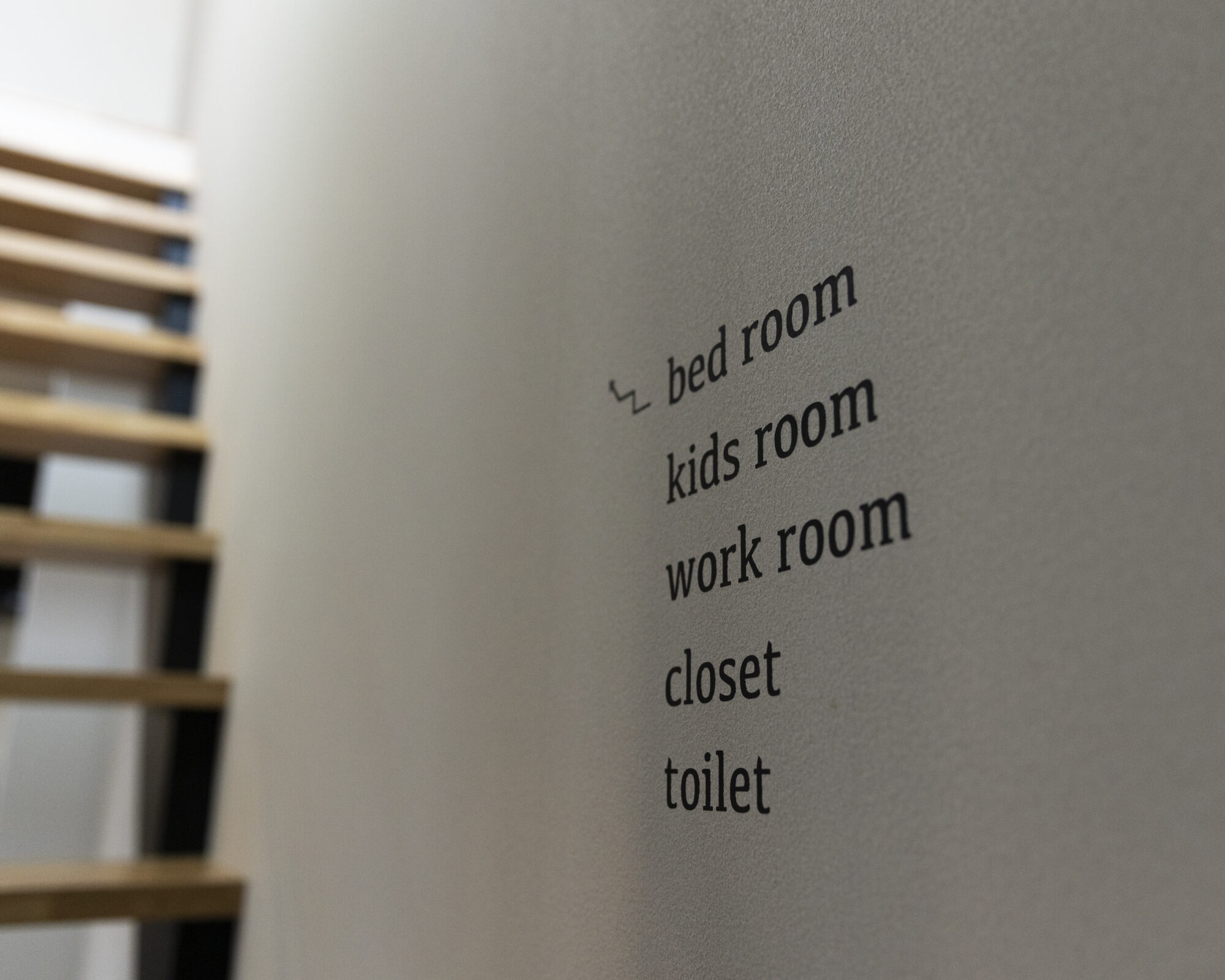 スチールと木を組み合わせたストリップ階段が空間を引き締め、床には質感豊かなフロアタイルをあしらい、意匠性と実用性を兼ね備えました。