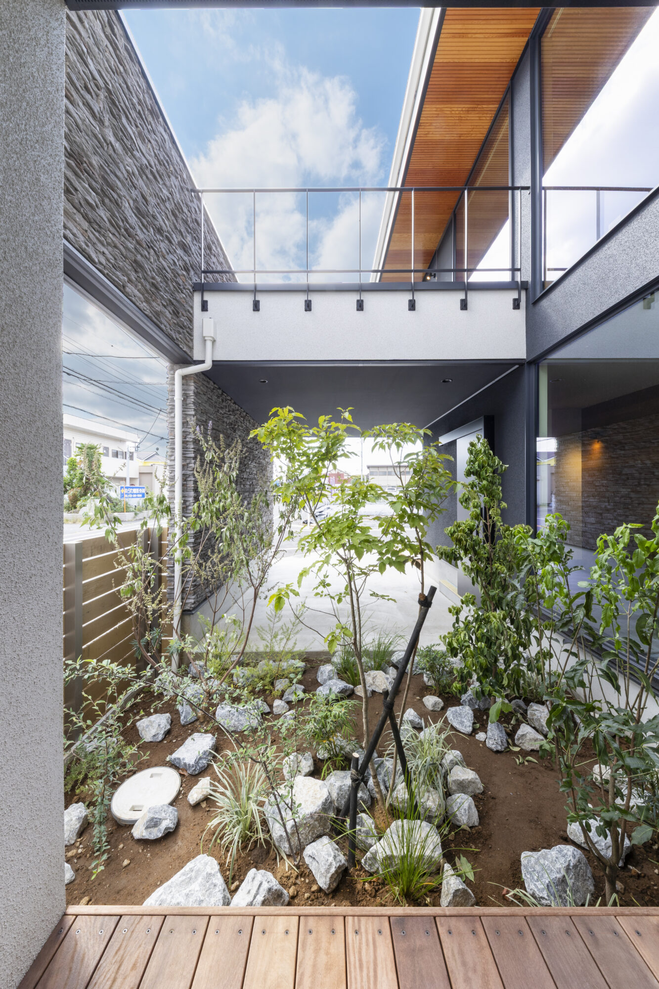 プライバシーを守りながら光や風を取り込める一方で、庭や土といった地面とのつながりが薄くなりがちな一面もあります。