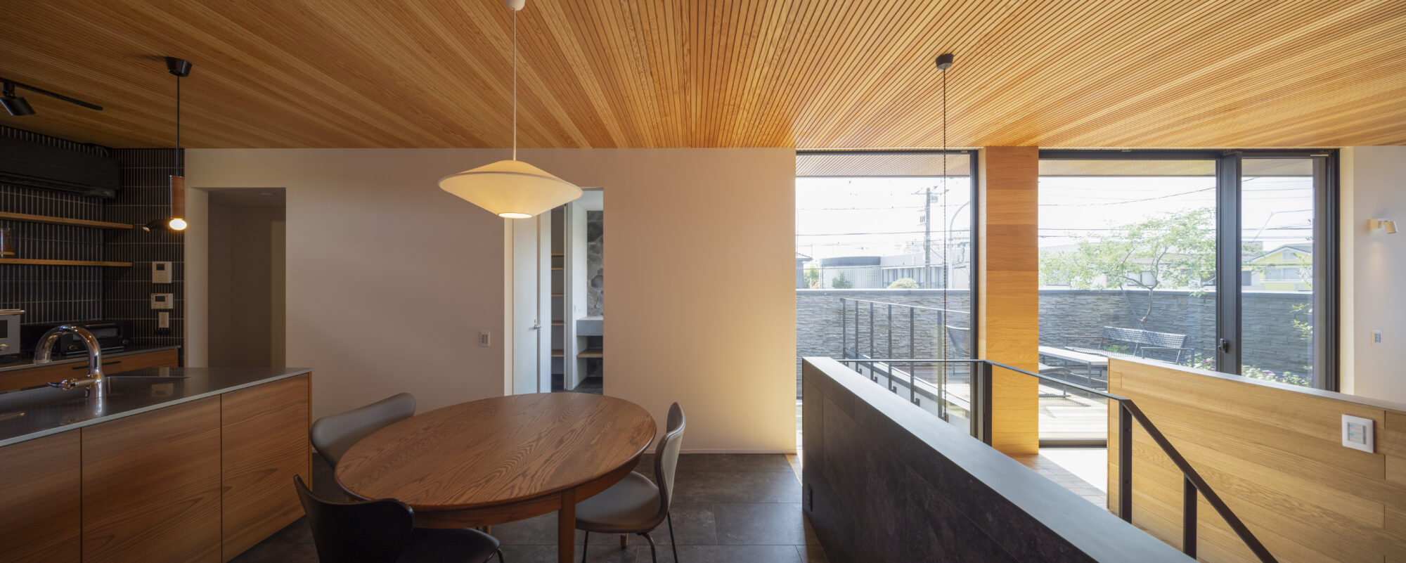その課題に応えるため、「空にもうひとつの庭」を持ち上げた住まいです。