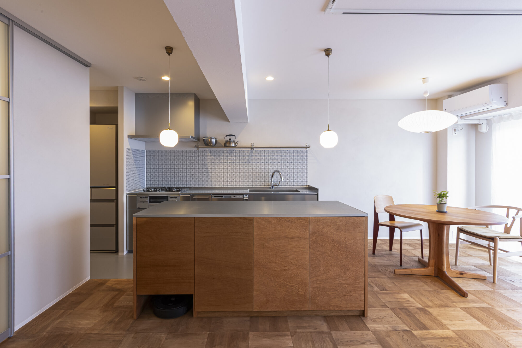 LDKは無垢のパーケットフロアとステンレスのキッチンが対をなし、ぬくもりとシャープさが心地よく調和します。