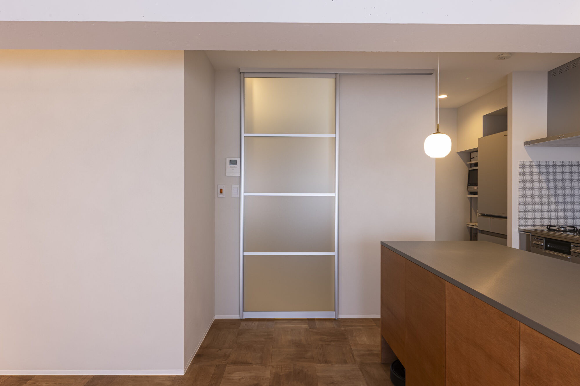 PORTER’S PAINTSで仕上げた壁が、空間ごとに異なる表情をつくり、ひとつの住まいの中で二度の心地よさを感じられる設計としました。