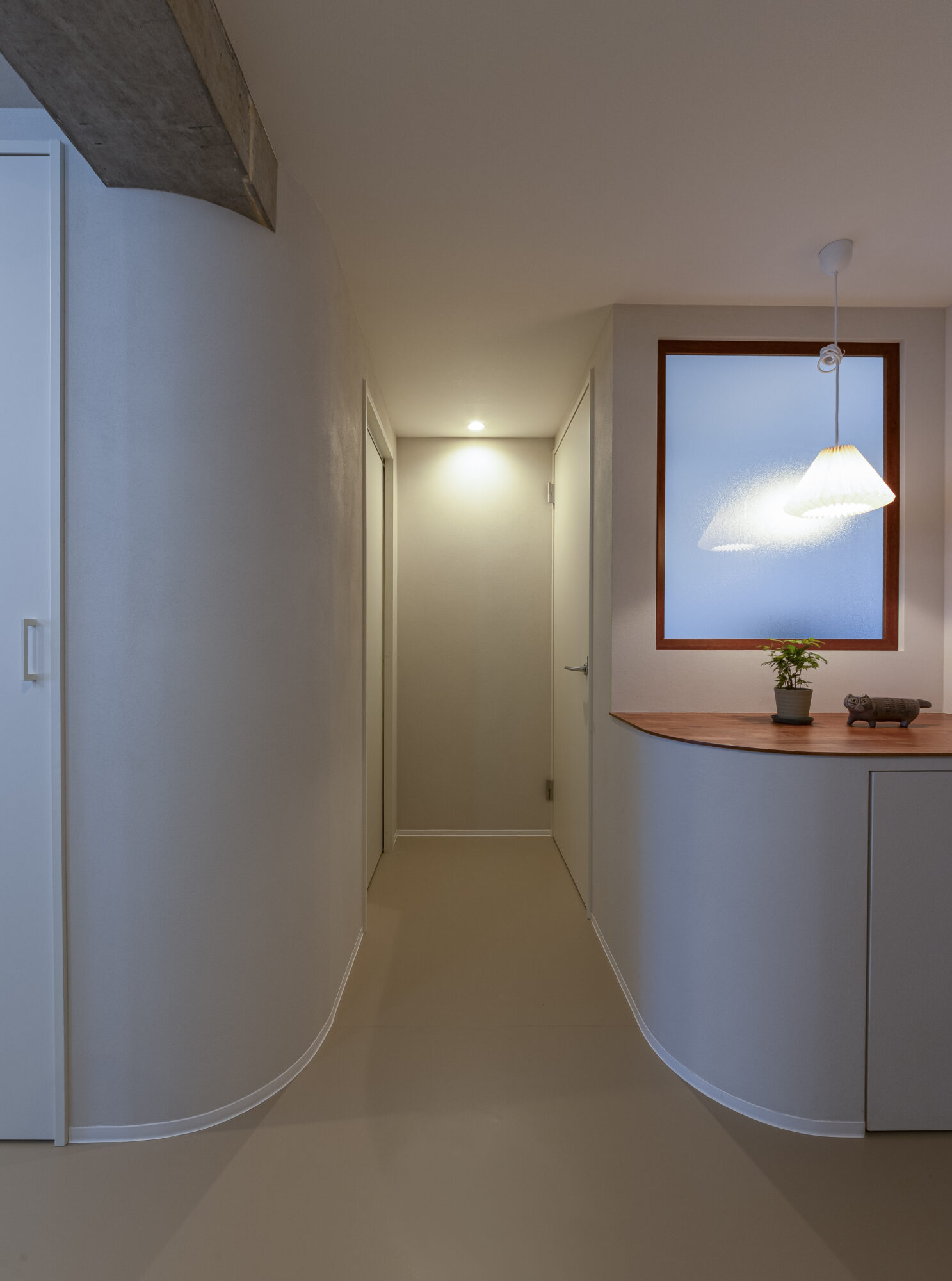 配管の制約で天井高はそのままに、廊下の間口を広げて光と風の抜けを確保。