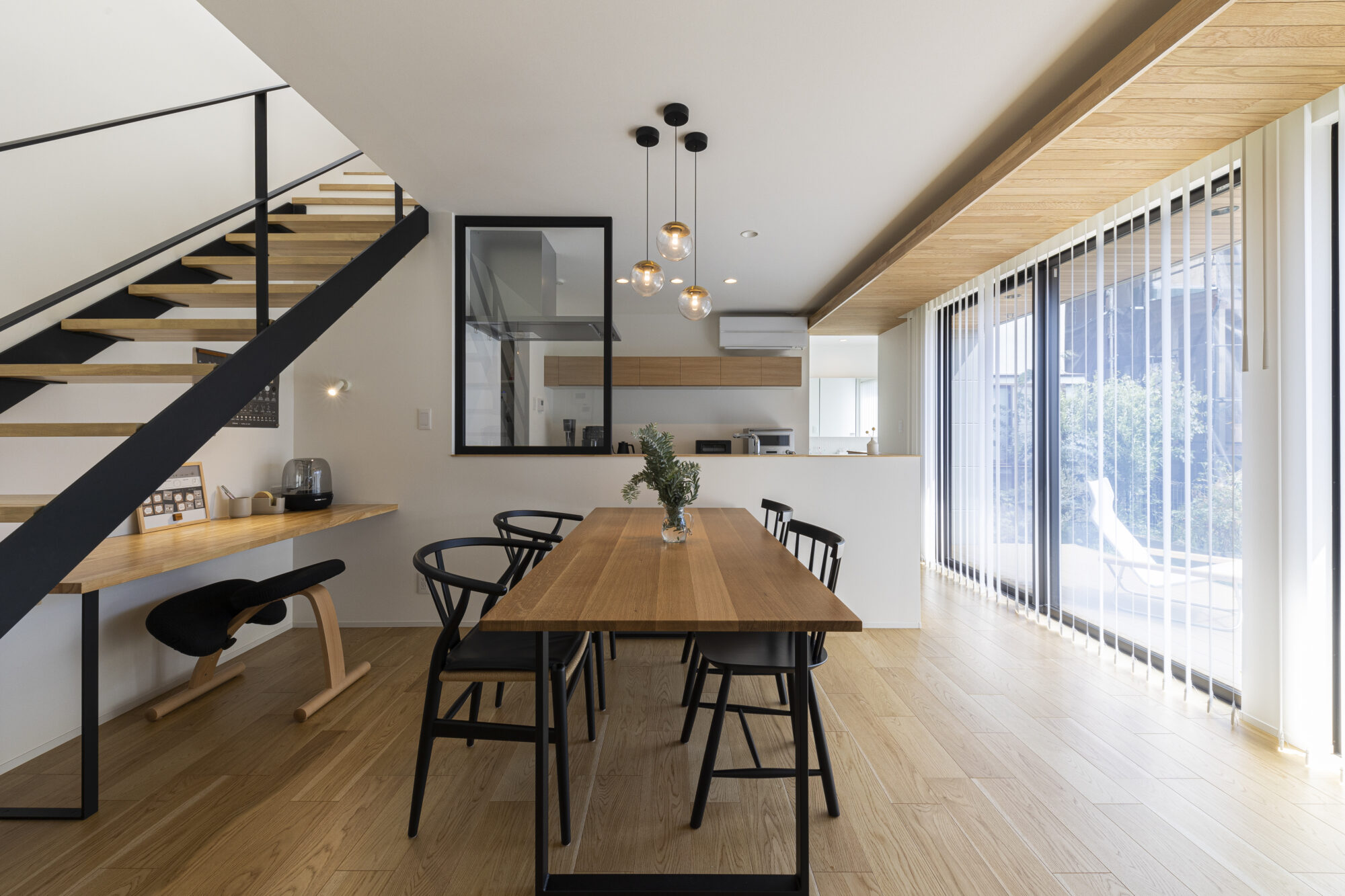 家の中心に据えたダイニングとキッチンでは、自然と会話が生まれ、日々の時間が穏やかに積み重なっていきます。