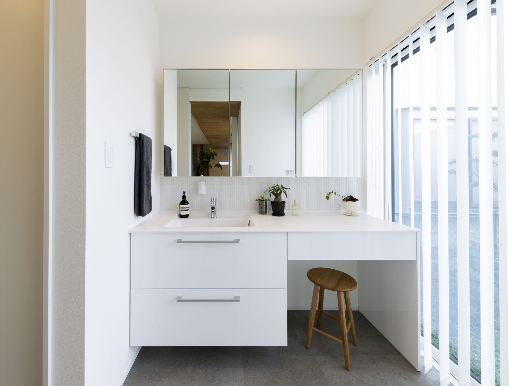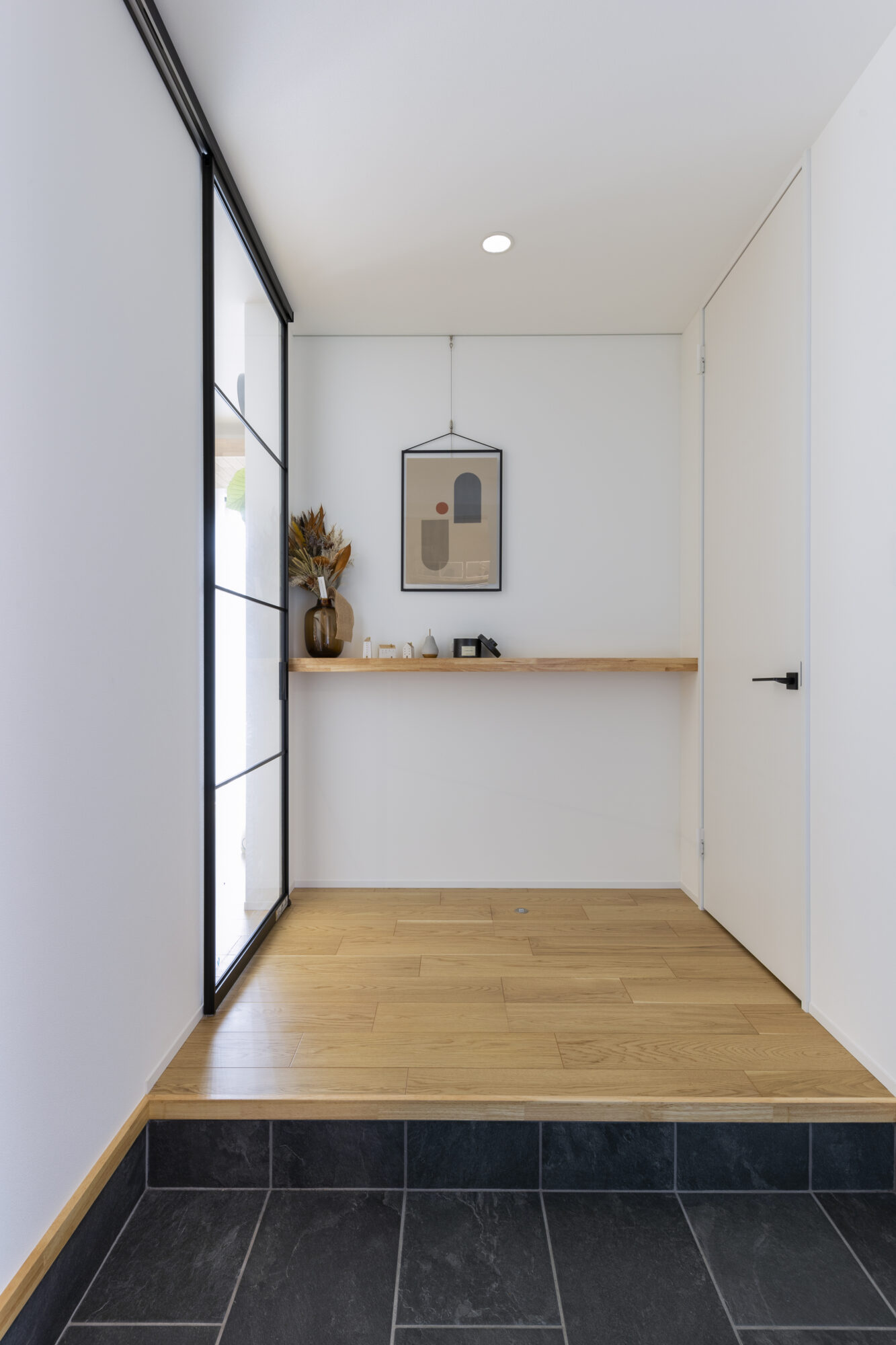 それぞれの対比を重ねながら調和を生み出し、暮らしの背景に凛とした美しさを纏うお住まいです。