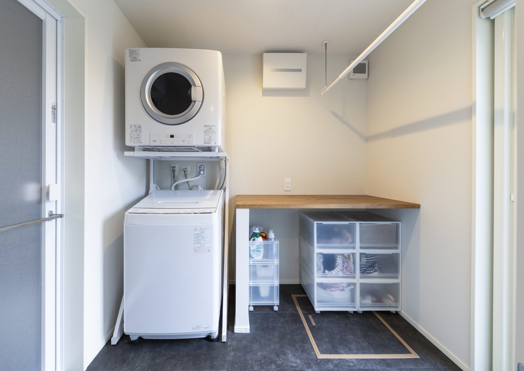 小屋根部分には水まわりを集約し、家事動線と効率性を高めたプランに。