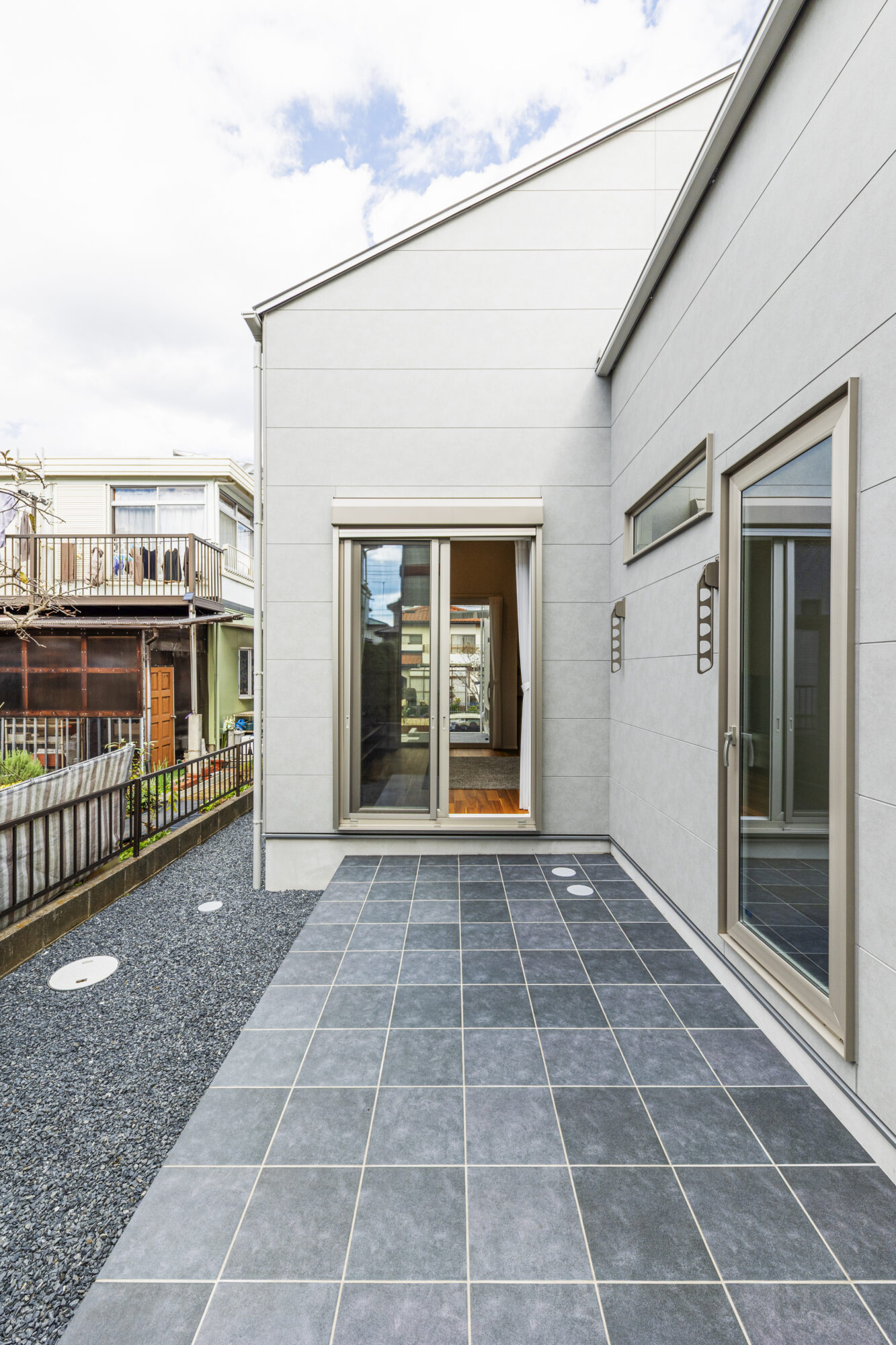 大屋根の手前に庭を設け、奥に小屋根をレイアウトすることで、北側でありながらも庭に光が差し込むよう工夫しました。