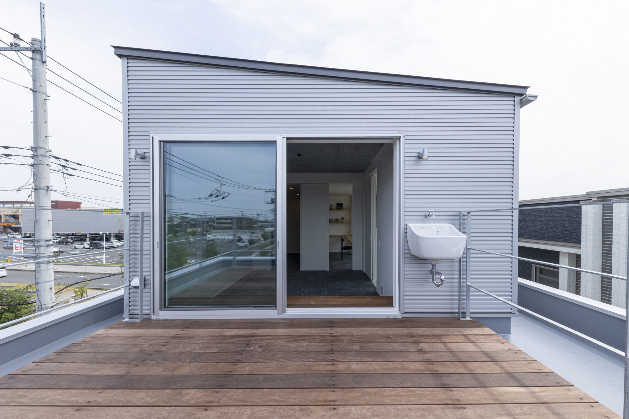 最上階には都市の空へ開かれたウッドデッキを設け、日常では風を浴びて、非日常には花火を望む舞台へ。